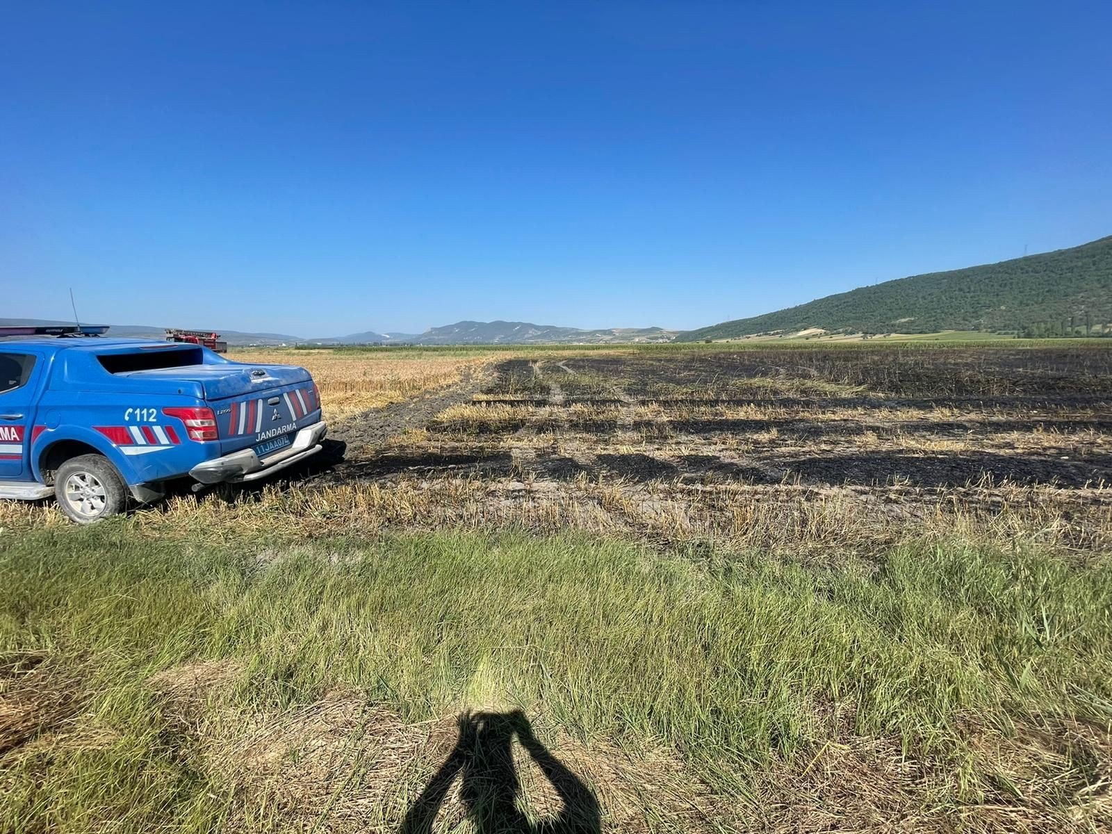 Kıvılcımlar birden aleve dönüşürken, koca tarla alevler arasında kaldı. Yangın sonunda 15 dönüm buğday tarlasını küle dönerken, yangına Gölpazarı itfaiyesine bağlı ekipler müdahale etti.