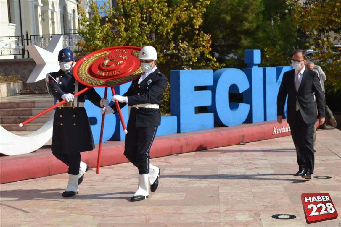 Atatürk Anıtı’na çelenk sunulmasıyla başlayan tören, saygı duruşu ve İstiklal Marşı’nın okunmasıyla devam etti.