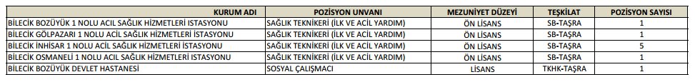 Sağlık Bakanlığı, 2017/3 tercih döneminde toplam 3 bin 890 kişinin alınacağını ve alım dahilinde Hemşire, İlk ve Acil Yardım Teknisyeni gibi branşlara geniş yer ayıracağını duyurmuştu.  Sözleşmeli personel alımı kapsamında AK Parti Bilecik Milletvekili Halil Eldemir ise Bilecik’e 9 adet sözleşmeli sağlık personeli atanacağını duyurdu.