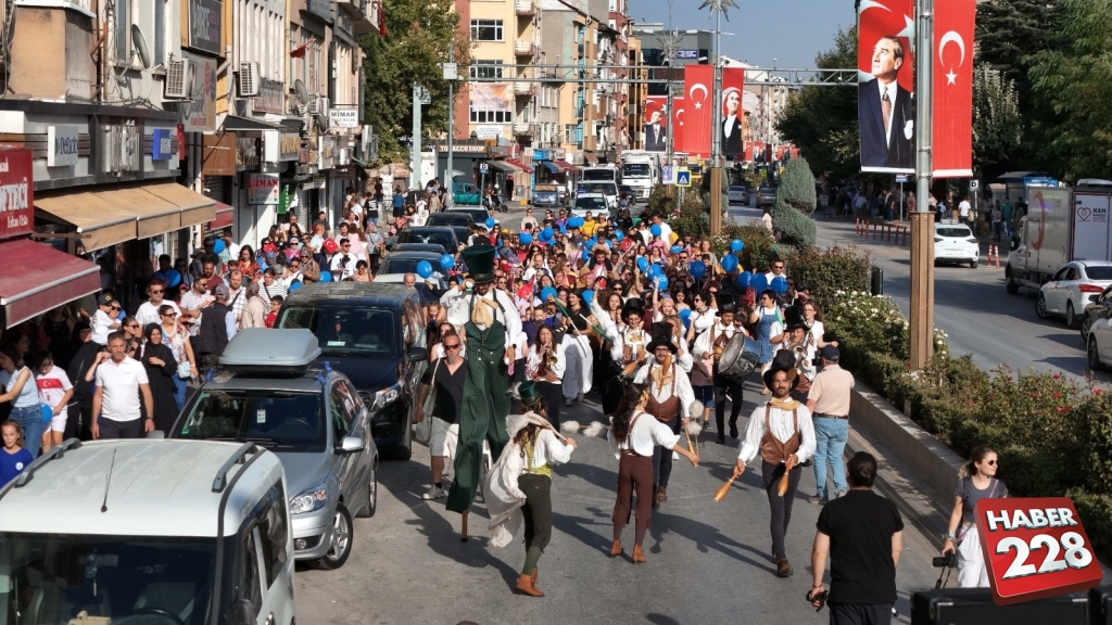 100. Yıl Çarşı Meydanı’nda başlayan geleneksel sanatevi panayırı, Cumhuriyet Caddesi, Kasımpaşa Hükümet Caddesi üzerinden devam ederek Sanatevi’nde sona erdi. Ellerinde Türk bayrakları ve balonlarla aileler ve çocuklar, bandoya eşlik etti.