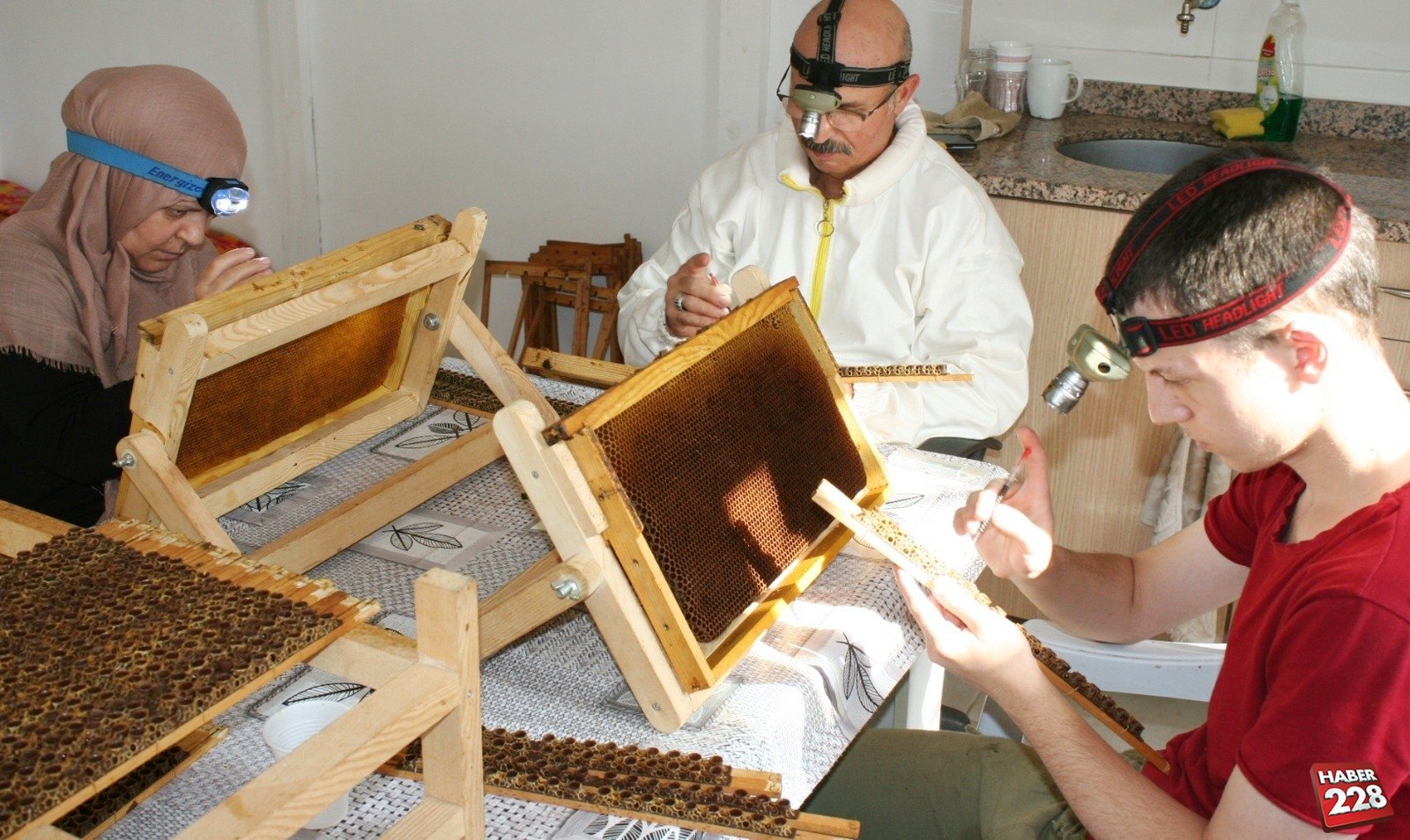Bilecik’in Bozüyük ilçesine bağlı Delielmacık köyünde arı çiftliği kuran Hüseyin Kaya, ailesiyle birlikte üretim yapıyor.
