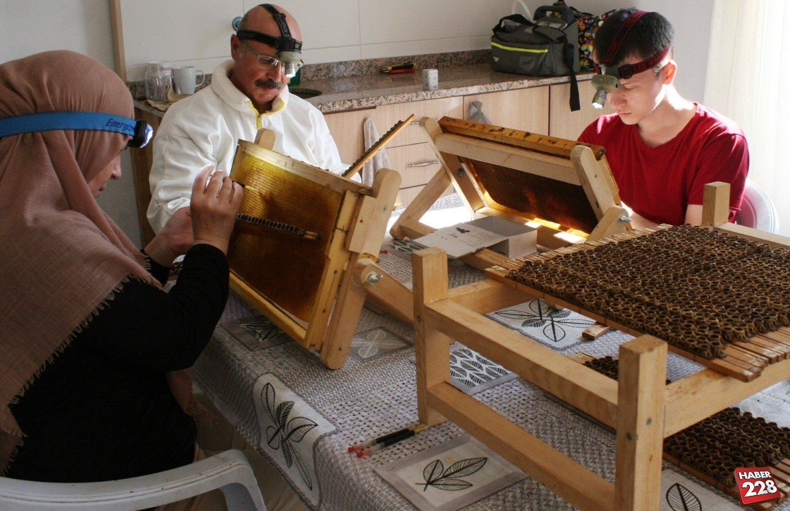 Arı sütü üretiminde temizliğin son derece önemli olduğunu ve bu yüzden arı sütü üretimi yapabilmek için hijyenik bir üretim odası gerektiğini ifade eden Kaya, “Üretim süreci boyunca sıcak, soğuk, yağmur, çamur dinlemeden her gün ekip olarak çalışmayı gerektiren bir üretim şekli. Bölgemiz genel olarak uzun süreli üretime uygun değil ancak tarımsal faaliyetin olmaması nedeniyle çok kaliteli ürünler elde etme imkanı veriyor. Burada organik standartlarda üretim yapabiliyoruz. Bizim kullandığımız yöntemde başlatıcı ve besleyici koloniler düzenleniyor. Ayrıca başlatıcı kolonileri destekleyen koloniler hazırlanıyor. Özel olarak hazırlanmış süt şeritlerine larva transferi yapılıyor. Larva transferi yapılmış arı sütü çerçeveleri kraliçesiz olarak düzenlenmiş kolonilere verilerek burada ilk kabul sağlanıyor. Ertesi gün başlatıcı kolonilerden alınan süt çerçeveleri besleyici kolonilere dağıtılıyor. İki gün süreyle de besleyici kolonilerde tutulan bu çerçeveler toplanarak hasat yapılıyor. Besleyici koloniler iki grup olarak hazırlandığı için her gün bir gruptan hasat yapılıp, başlatılmış olan çerçeveler veriliyor. Bu döngü üretim süreci boyunca her gün tekrar edip gidiyor” dedi.