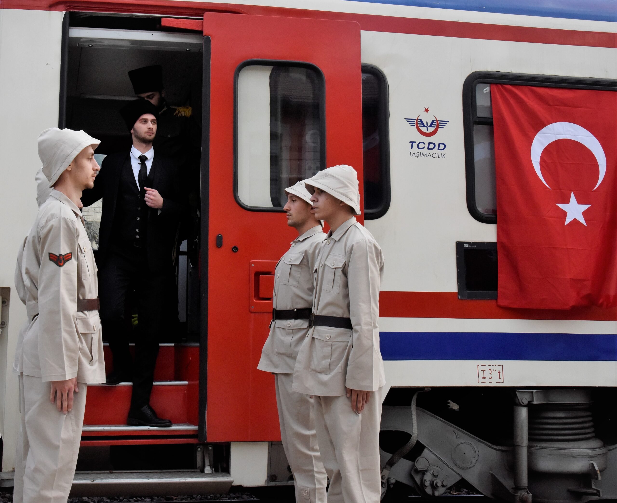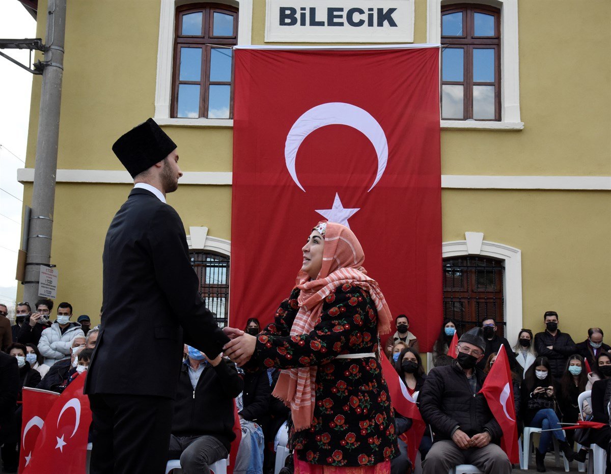 Ardından 101 yıl önce Atatürk’ün Bilecik Garı’na geldiği an ve görüşme canlandırılırken, katılımcılar bu canlandırmayı ayakta alkışladı.