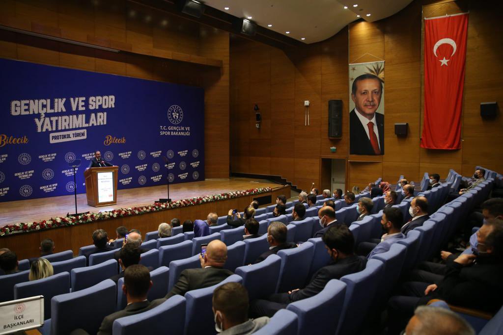 Bakan Kasapoğlu, Bilecik’e yapılacak gençlik ve spor yatırımlarıyla ilgili protokol imza töreninde konuştu. İmza törenine, Bilecik Valisi, milletvekili, ilçe belediye başkanları ve Bilecikli gençler katıldı.
