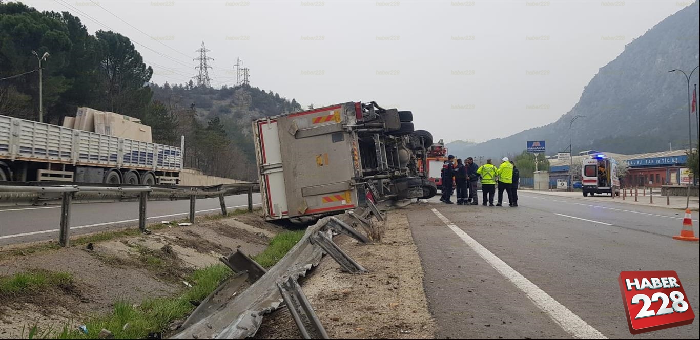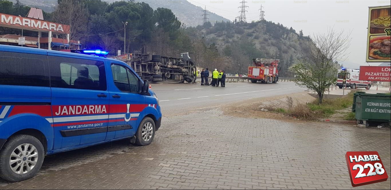 Alınan bilgilere göre; Bilecik-Osmaneli karayolunda seyir halinde bulunan 41 YN 440 plakalı kamyon sürücüsü Sayit M. Vezirhan beldesine geldiğinde aracın direksiyon hakimiyetini kaybetti. Kontrolden çıkan araç yolun sağ tarafındaki bariyerlere çarparak devrildi. Kazada araç sürücü Sayit M. yaralanırken, yaralı olay yerine gelen 112 Acil Servis ekiplerince yapılan ilk müdahalenin ardından Bilecik Eğitim ve Araştırma Hastanesine kaldırıldı.