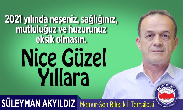 Başkan Süleyman Akyıldız’ın Yeni Yıl Kutlama Mesajı Uğur Baklacı tarafından yayınlandı 31 Aralık 2020, 18:00 yayınlandı + - Paylaş Bu Yazıyı Paylaş veya linki kopyala Kopyala Başkan Süleyman Akyıldız’ın Yeni Yıl Kutlama Mesajı Yorum Yap Paylaş