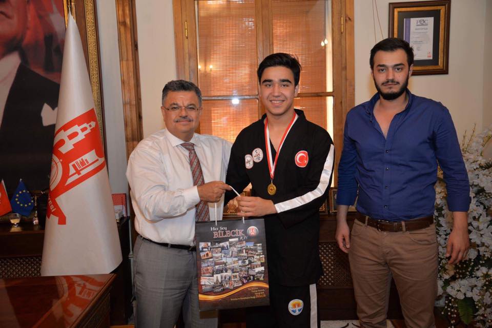 Bilecik’te spor alanında özellikle son dönemlerde elde edilen başarılara dikkat çeken Belediye Başkanı Selim Yağcı; ”Adana’da düzenlenen toplam 700 yarışmacının katıldığı Hapkido Türkiye şampiyonasında 74 kilogramda Berkan Çeşmeci, 68 kilogramda Berkem Çeşmeci ve 63 kilogramda Kamil Kır kardeşlerimiz Türkiye 1.’si oldular. Bizlere bu gururu yaşatan sporcularımıza çok teşekkür ederim katkıları gayretleri sebebiyle Belediyemiz Spor Kulübü Başkanı Emin Yağcı Bey’e sporcularımızın eğitimlerini veren Antrenör Ahmet Sinan Özcan Hocamıza çok teşekkür ediyorum. Başarılarının devamını diliyorum.” ifadelerini kullandı.