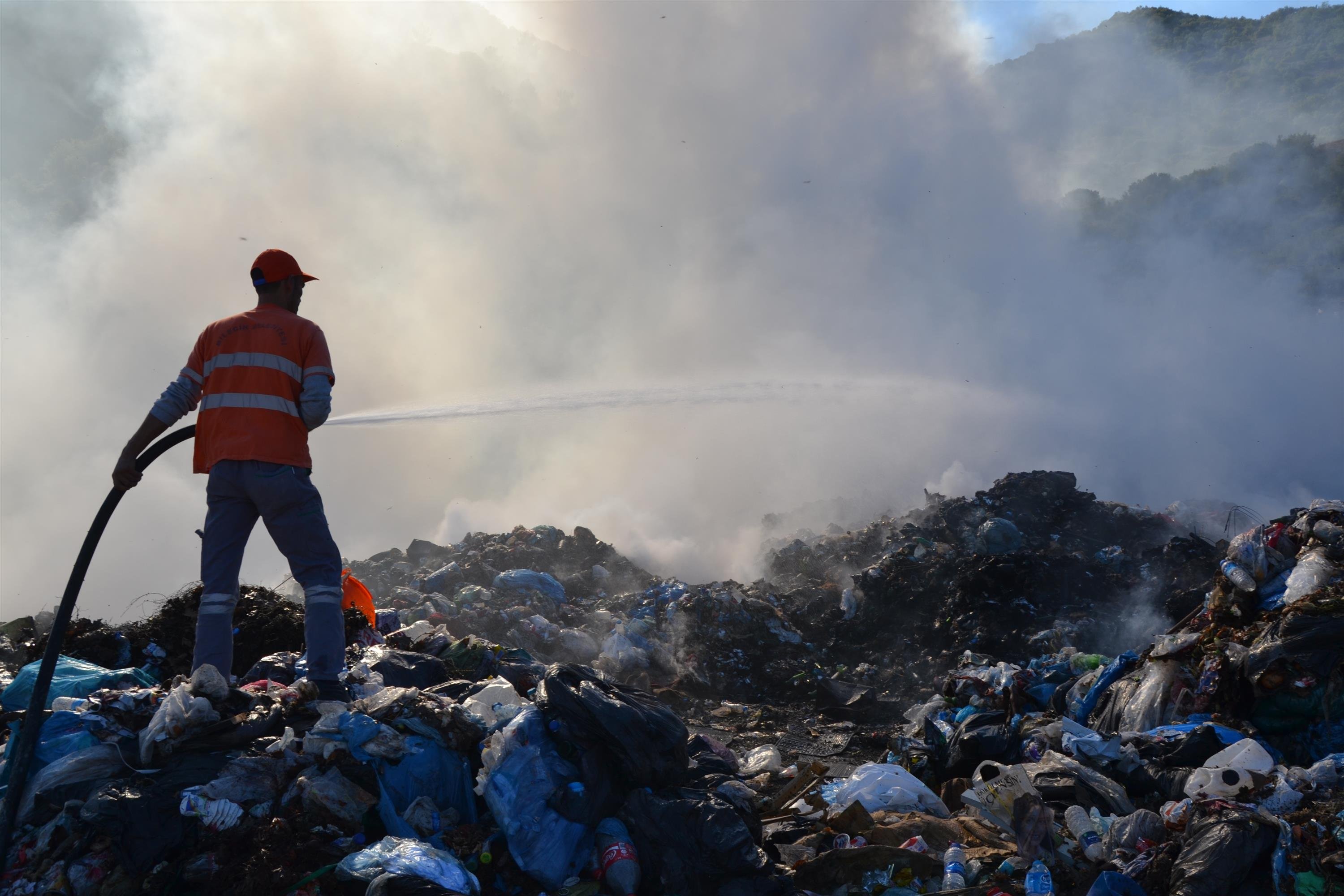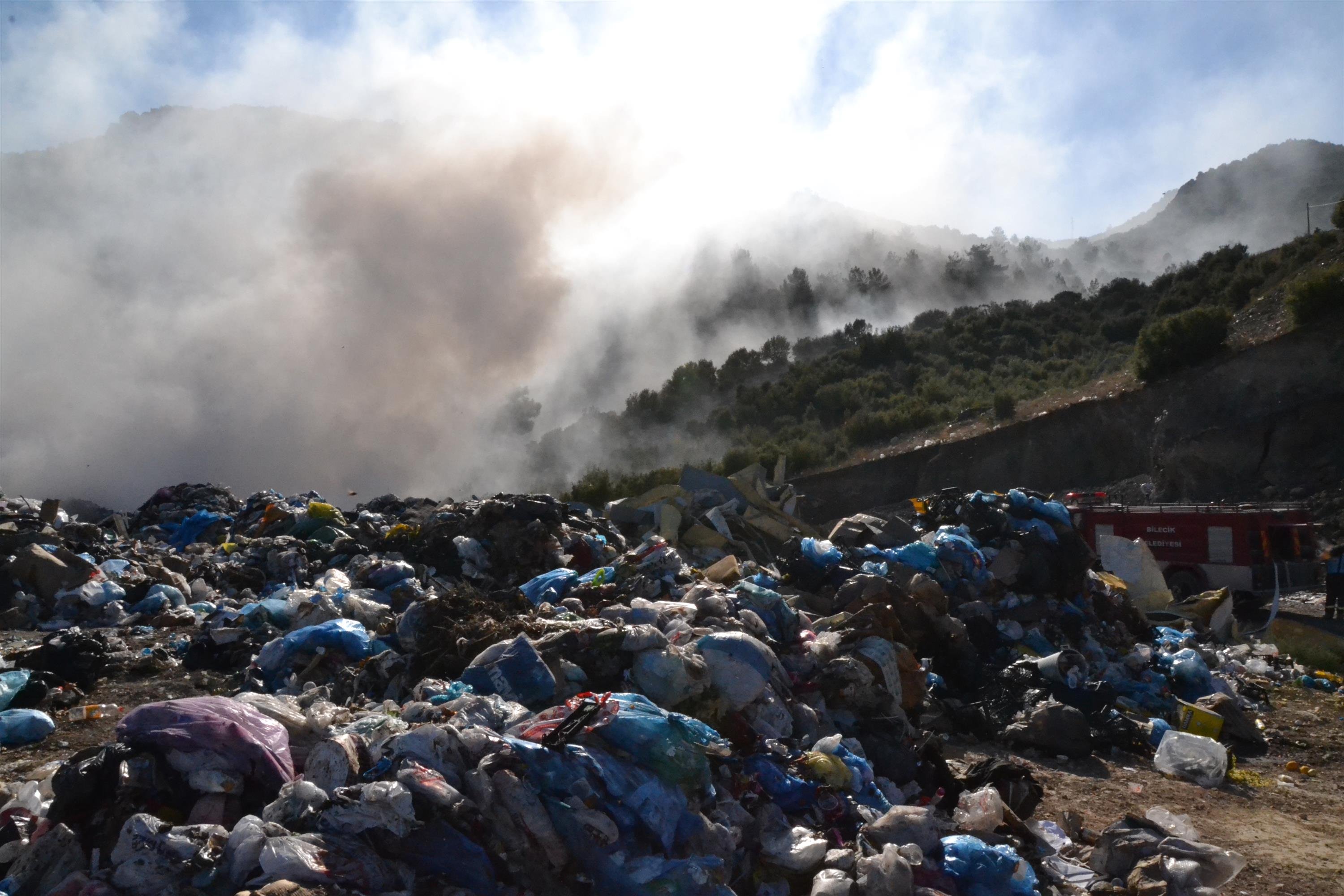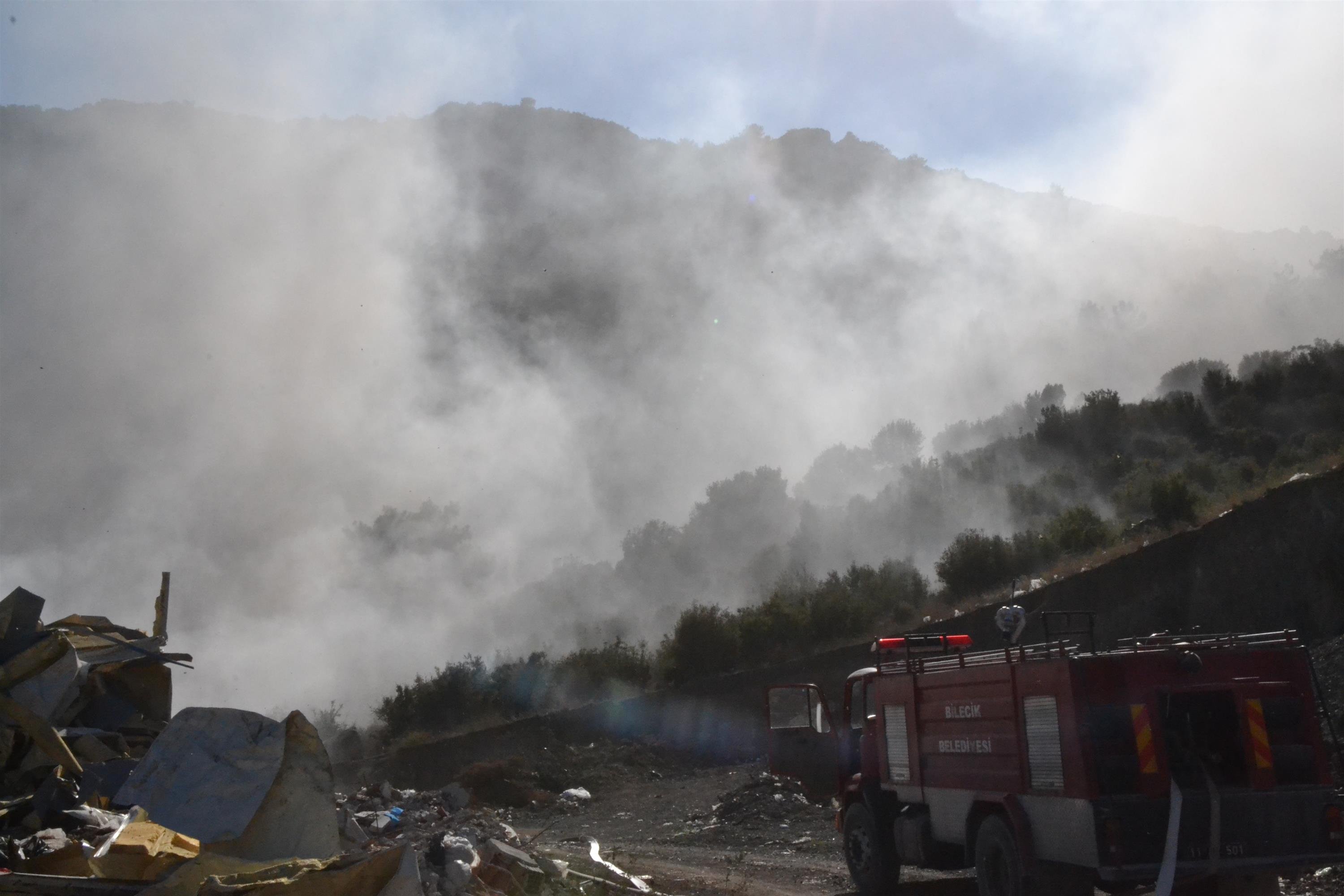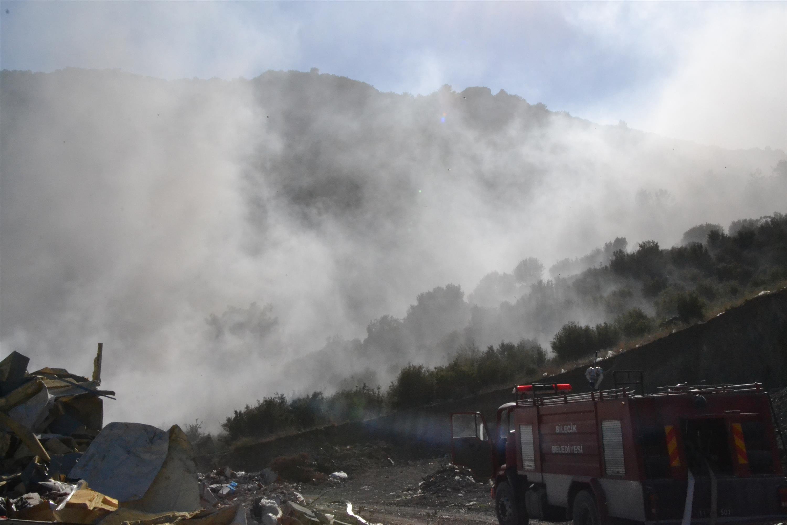 Karaçay mevkiinde bulunan Bilecik Belediyesinin katı atık çöplüğü olarak kullandığı alanda henüz belirlenemeyen nedenle yangın çıktı. Sabah saatlerinde başlayan yangından yükselen yoğun duman Bilecik’in üzerini kaplamış durumda.