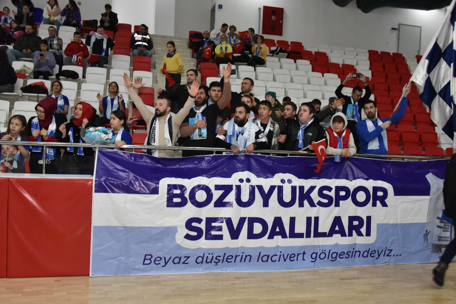 Bozüyük Yeni Kapalı Spor Salonu’nda oynanan maç öncesinde Belediye Başkanı Mehmet Talat Bakkalcıoğlu beraberindeki Başkan Yardımcısı Ali Şahinoğlu ile birlikte sahaya inerek “Bizim Kızlar”a başarılar diledi. Maç boyunca büyük bir coşkuyla takıma destek veren Bozüyüklü taraftarlar da yine maç öncesinde takıma çiçek hediye ederek başarılar diledi. Bozüyük Belediyesi Eğitim ve Spor Kulübü Kadın Voleybol Takımı üzerinde “Şehitler Ölmez, Vatan Bölünmez” yazılı pankart ile sahaya çıkarken Pençe Kilit Harekâtı Bölgesi’nde hain terör örgütü ile çıkan çatışmalarda verdiğimiz şehitlerimiz anılarak şehitlerimizin anısına 1 dakikalık saygı duruşunda bulunuldu. Başlama düdüğünün ardından yoğun seyirci desteği ile oynanan heyecanlı maçta “Bizim Kızlar” ilk seti (25-19) alırken 2. seti (23-25) kaybetti. Ardından 3. seti (25-19) ve 4. seti de (25-20) kazanan “Bizim Kızlar” maçı 3-1 kazandı. Başkan Bakkalcıoğlu galibiyetle biten maçın sonunda beraberindeki Kaymakam Adem Öztürk ve Başkan Yardımcısı Ali Şahinoğlu ile birlikte sahaya inerek “Bizim Kızlar”ı ve teknik ekibi tebrik etti, takımın ve taraftarın galibiyet sevincine ortak oldu.