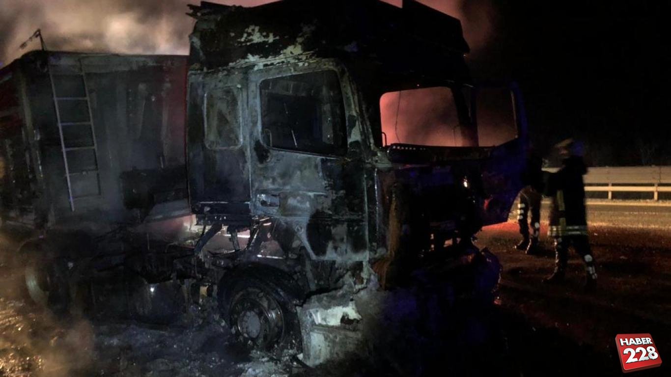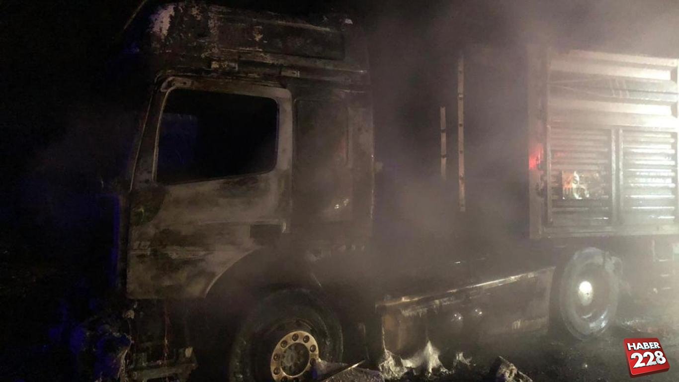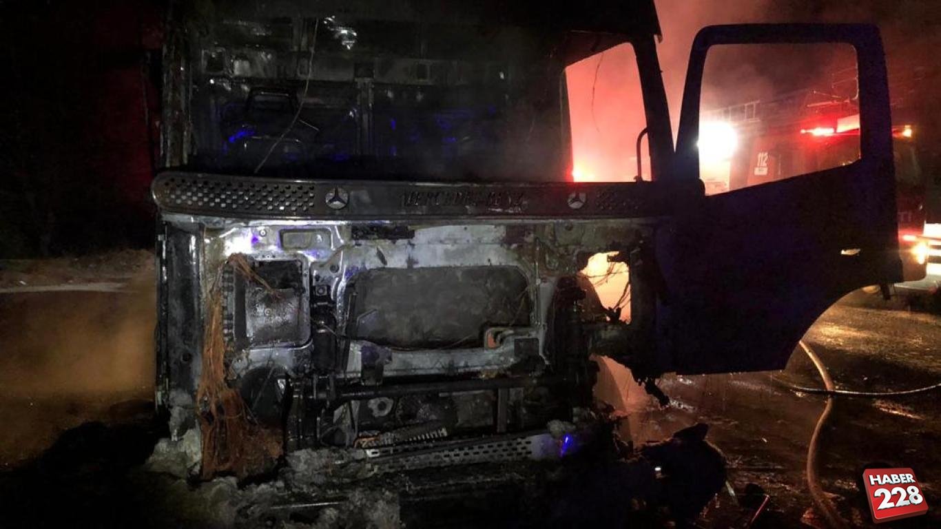 Tırın kullanılamaz hale geldiği yangının çıkış nedeni araştırılıyor.