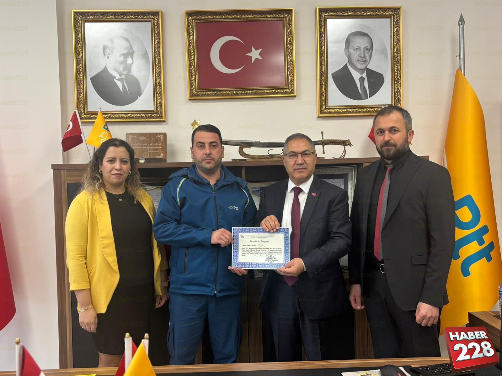Kutlamalar kapsamında ayrıca PTT’de ki başarılı çalışmalarından dolayı Sinan Ertaş’a Başmüdür Serhat Bozkurt tarafından başarı belgesi takdim edildi.