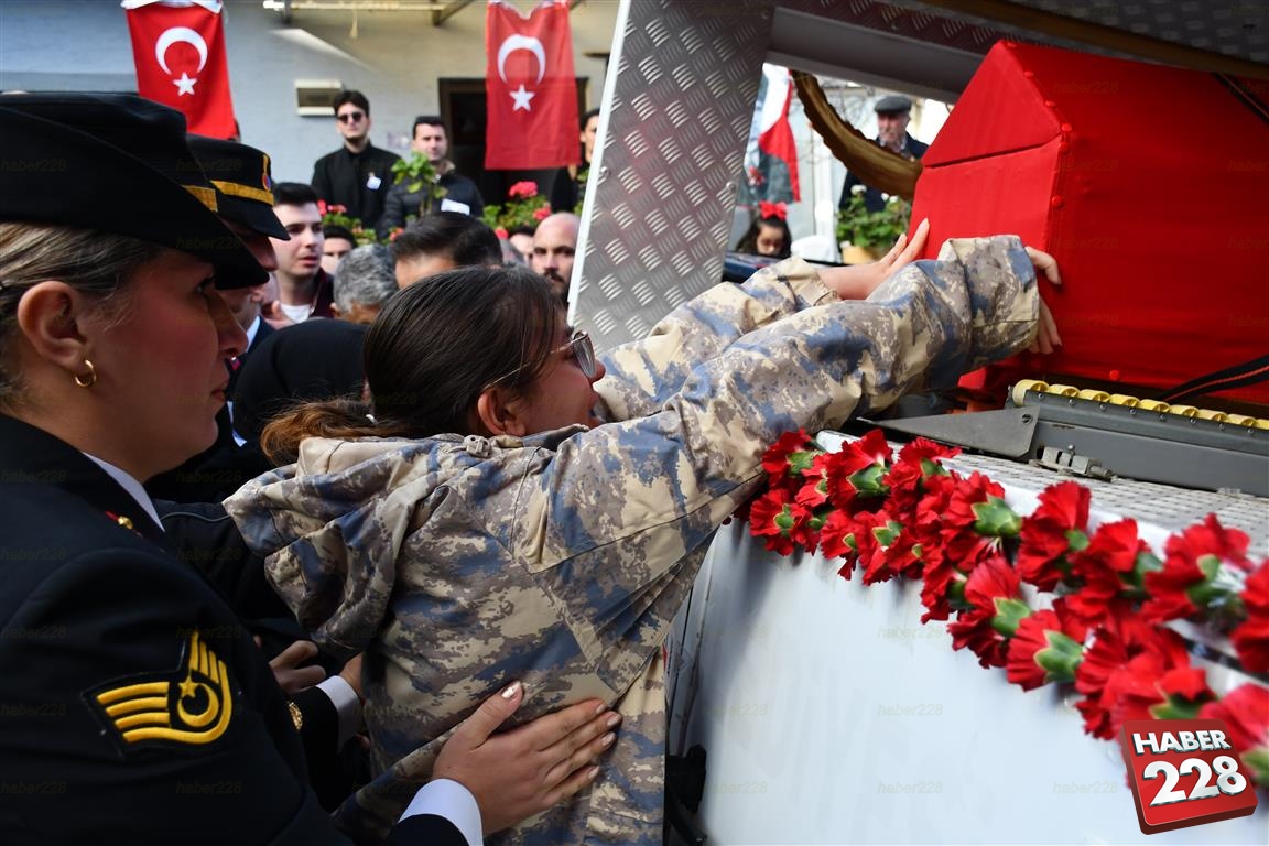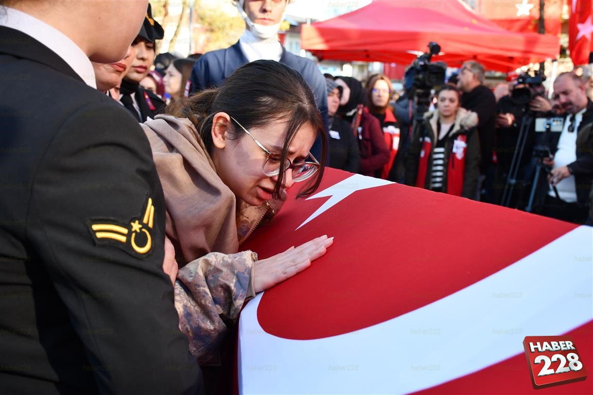 Ongan’ın babası Ali, annesi Hatice ile ağabeyinin kamuflajını giymiş kız kardeşi Ayşe, cenaze namazı öncesi tabutun başına geldi.