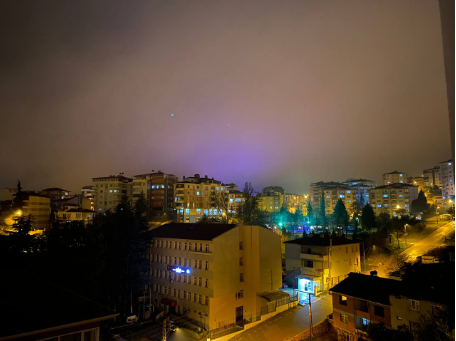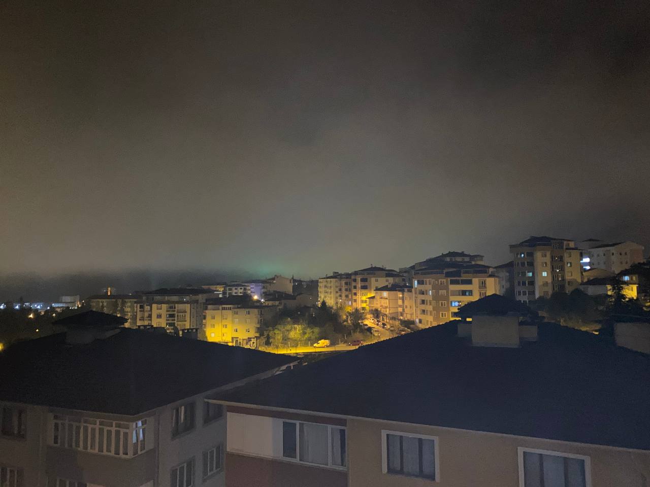 Bilecik’te birkaç gündür yaşanan yağış sonrası gece saatlerinde şehri sis kapladı. Sis ile birlikte gökyüzünün bazı bölgelerinde yeşil ve mor renkli ışıklar göründü.