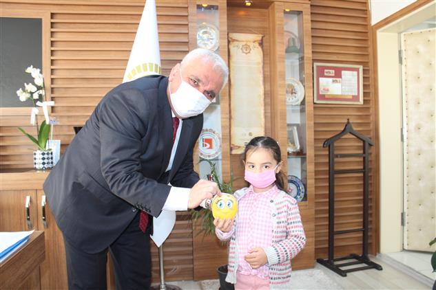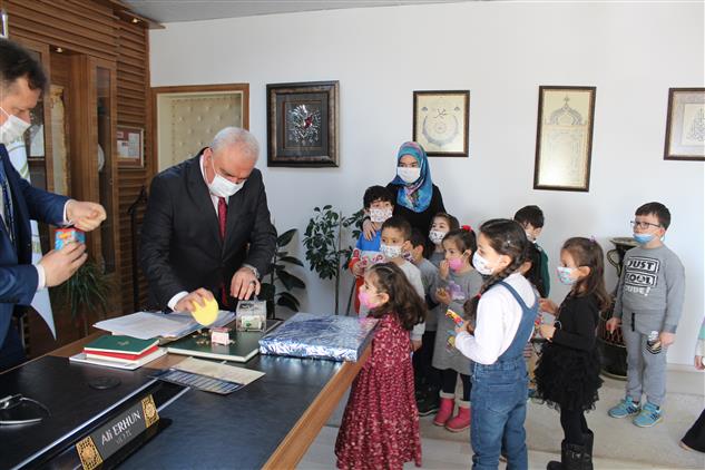 Hacı Menekşe Sözer 4-6 yaş grubu Kuran kursu öğrencileri, Kuran kursu öğreticileri Ebru Başpınar ve Aysun Korkmaz ile birlikte Bilecik İl Müftülüğüne gelerek, kampanyada kullanılmak üzere kumbaralarını İl Müftüsü Ali Erhun’a teslim ettiler.