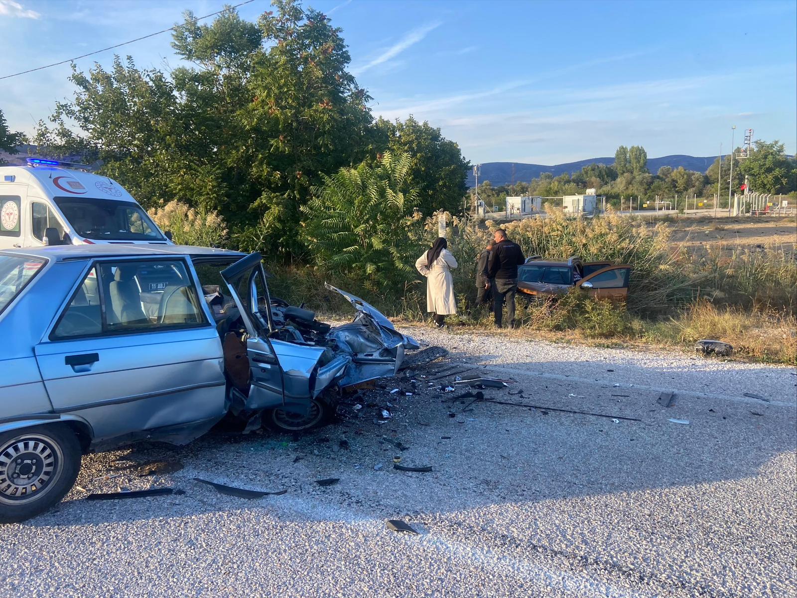 F.K. (29) yönetimindeki 43 KH 035 plakalı otomobil Gölpazarı-Bilecik kara yolunun Küçükyenice köyü mevkisinde, H.Y’nin (45) kullandığı 11 AAN 146 plakalı otomobille çarpıştı.