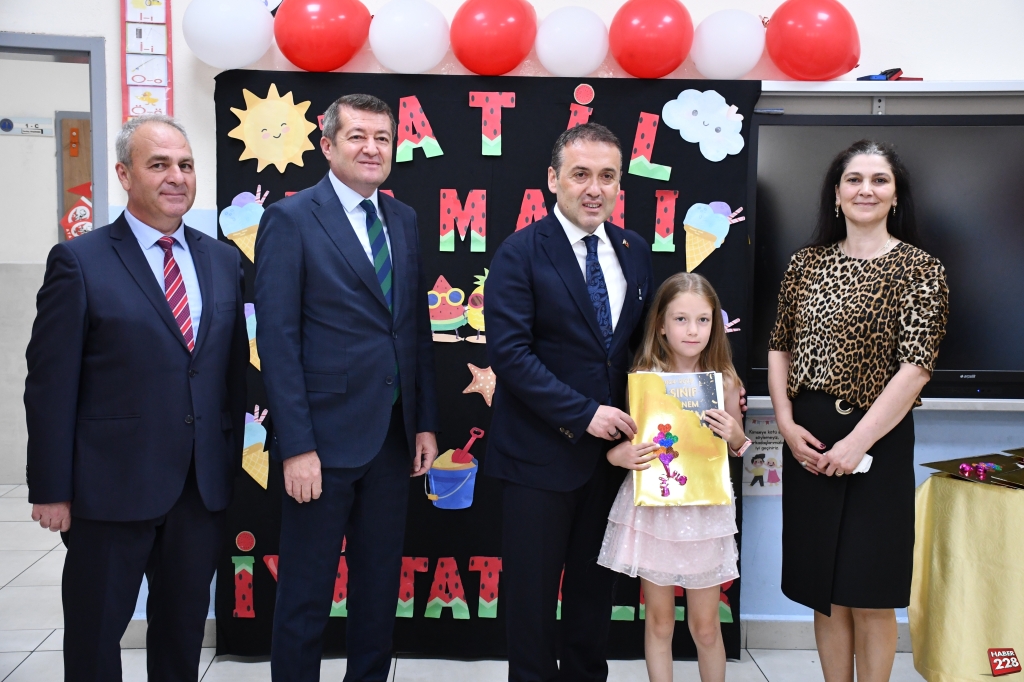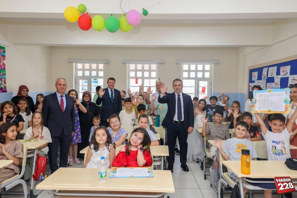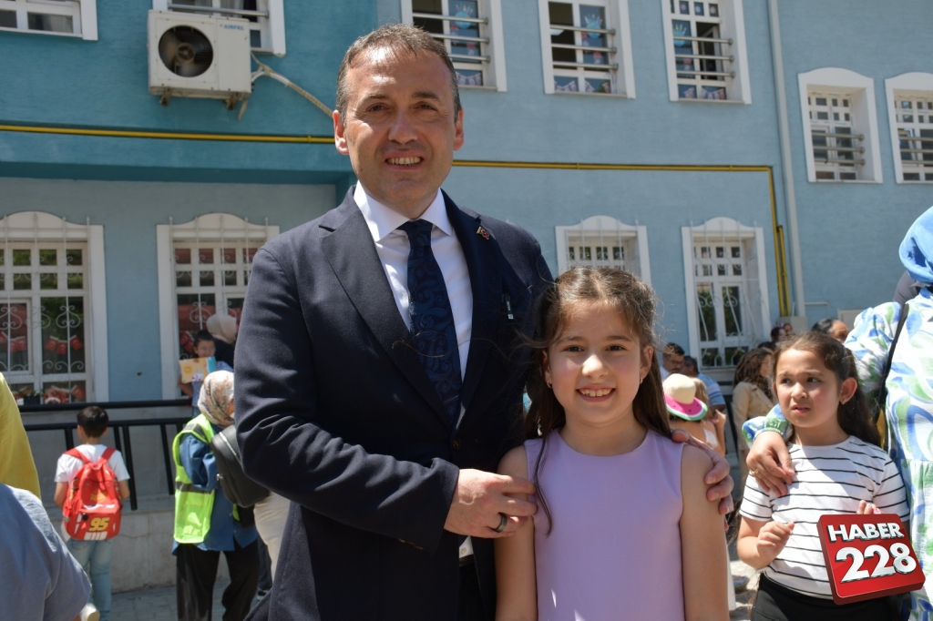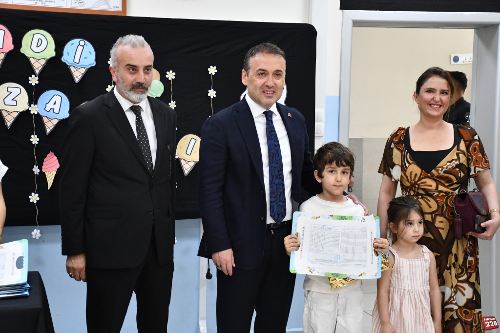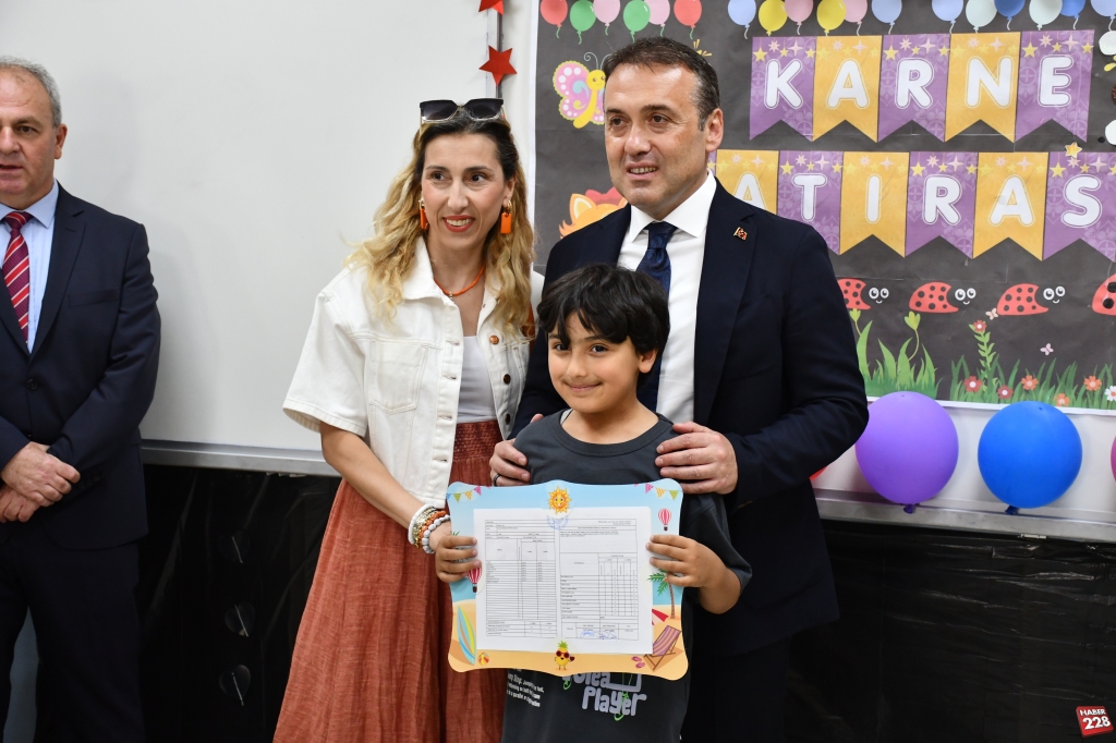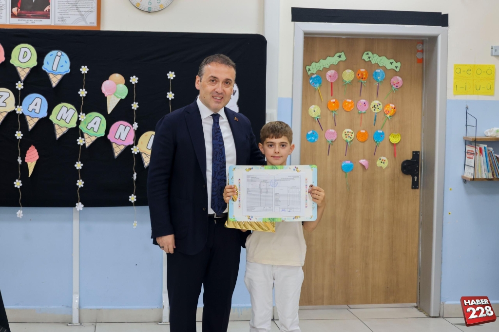 Kent merkezindeki Atatürk İlkokulu’nda düzenlenen karne dağıtım törenine katılan Vali Faik Oktay Sözer, sınıfları gezerek öğrencilere karnelerini verdi, başarılarının devamını diledi.