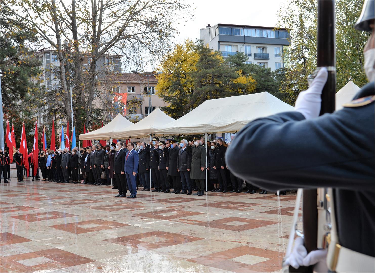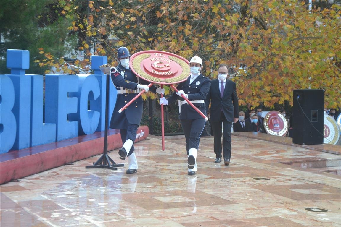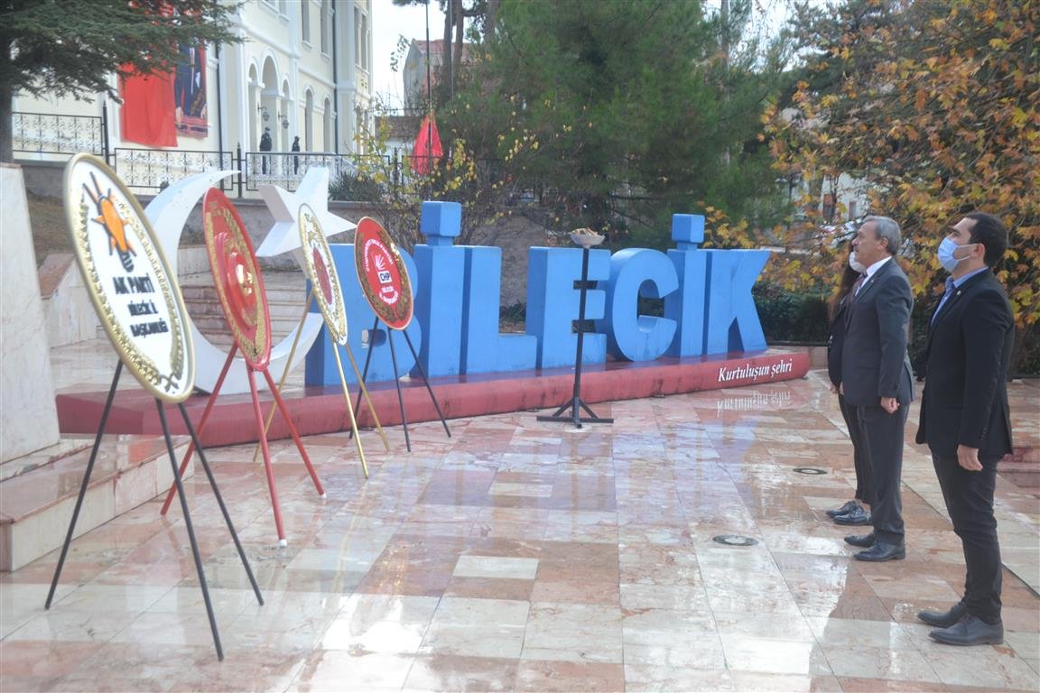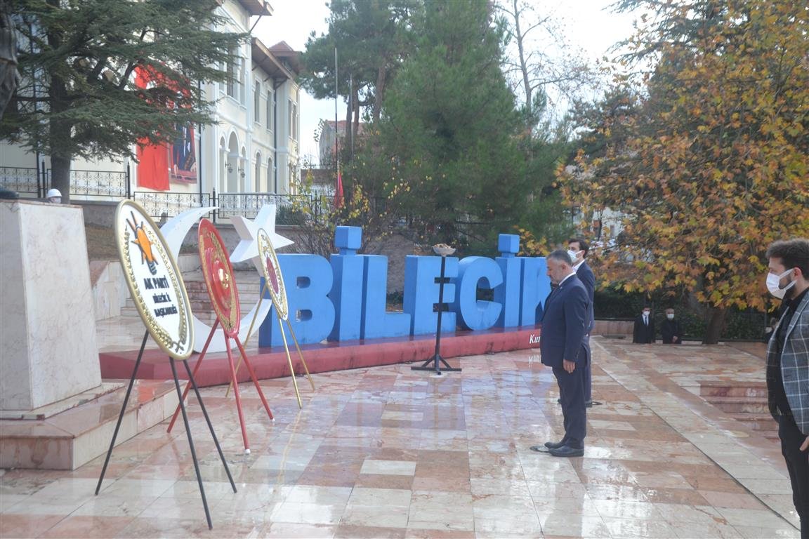 Cumhuriyet Meydanında Atatürk’ün ebediyete intikalinin 83’üncü yıl dönümü dolaysıyla Bilecik Valiliği’nin öncülüğünde anma programı düzenlendi. Atatürk anıtına sunulan çelenkler sonrası, saat 9’u 5 geçe Cumhuriyet Meydanında 2 dakika boyunca sirenler eşliğinde ataya saygı duruşu gerçekleştirildi.