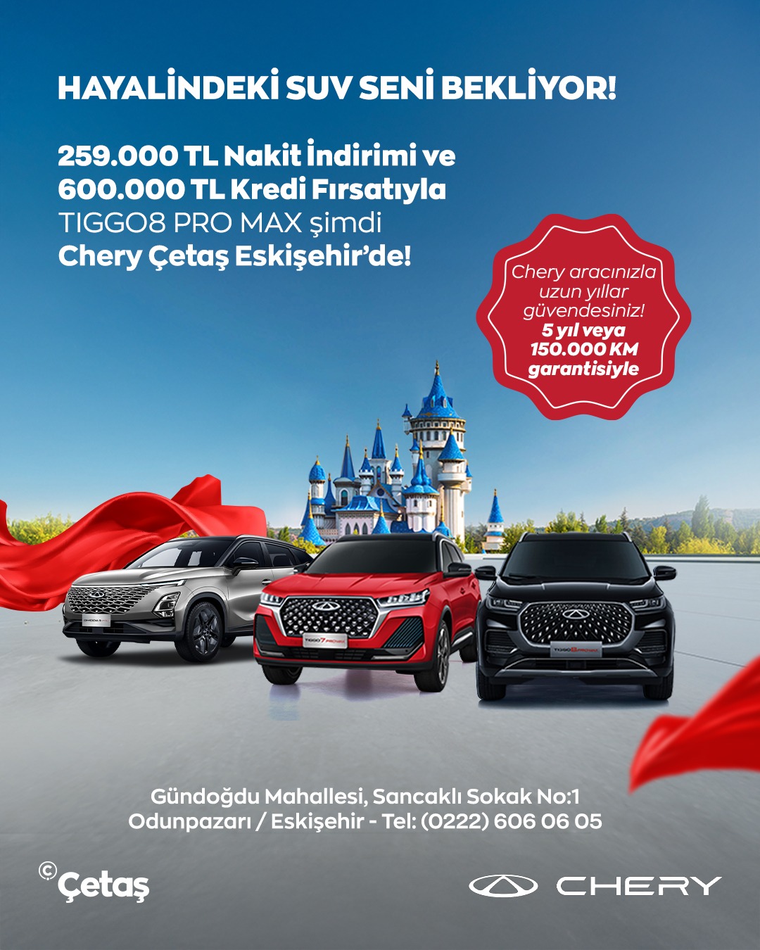 Çetaş Chery Eskişehir Yetkili Satıcısında Nisan ayı boyunca geçerli olacak kampanya kapsamında, hem ticari hem de bireysel müşterilere yönelik cazip fırsatlar sunuluyor.