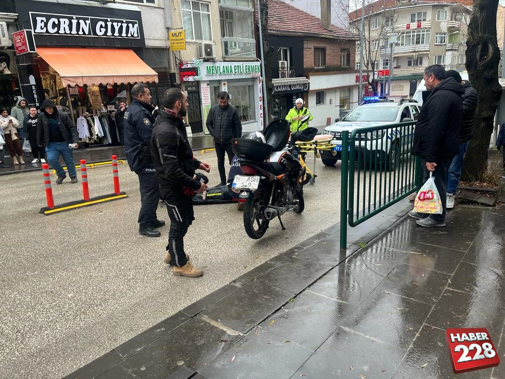 Alınan bilgiye göre, Bilecik Merkez Tepebaşı mevkisinden Çarşı istikametine seyir halindeki Zeynel M. A. yönetimindeki 11 ABH 340 plakalı motorlu bisiklet Tevfikbey caddesine giriş yaptığı esnada arka tekerinin zincir atıp kitlenmesi sonucu dengesini devrildi.