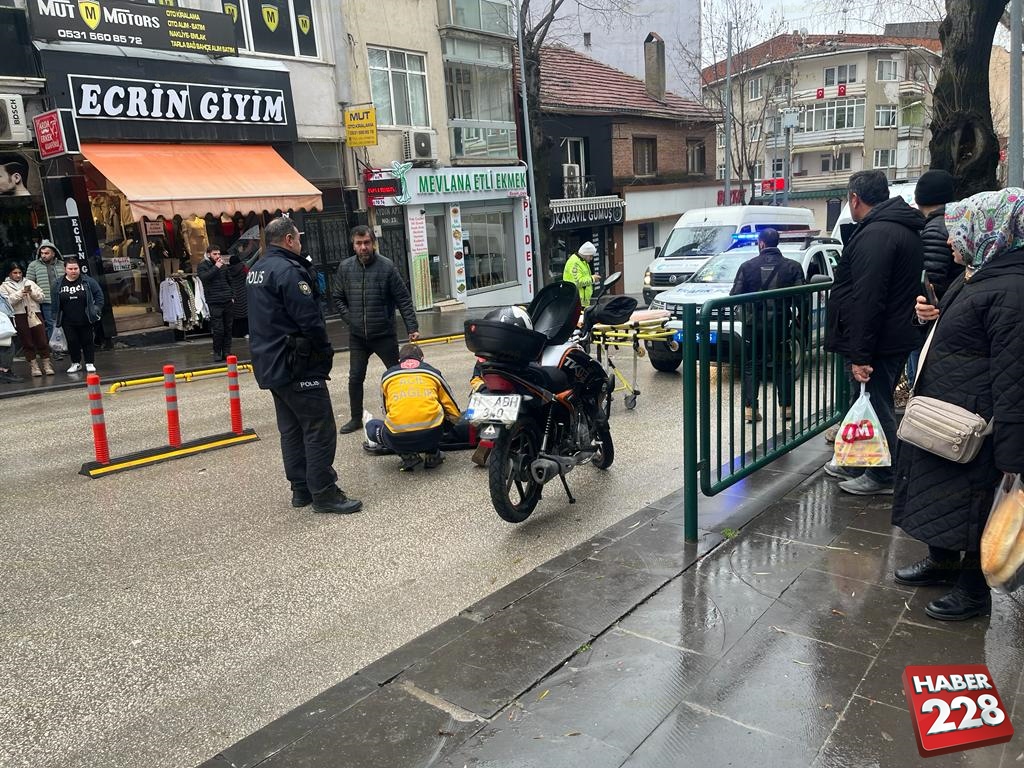 Meydana gelen kazada devrilen motorlu bisiklet sürücüsü yaralandı.