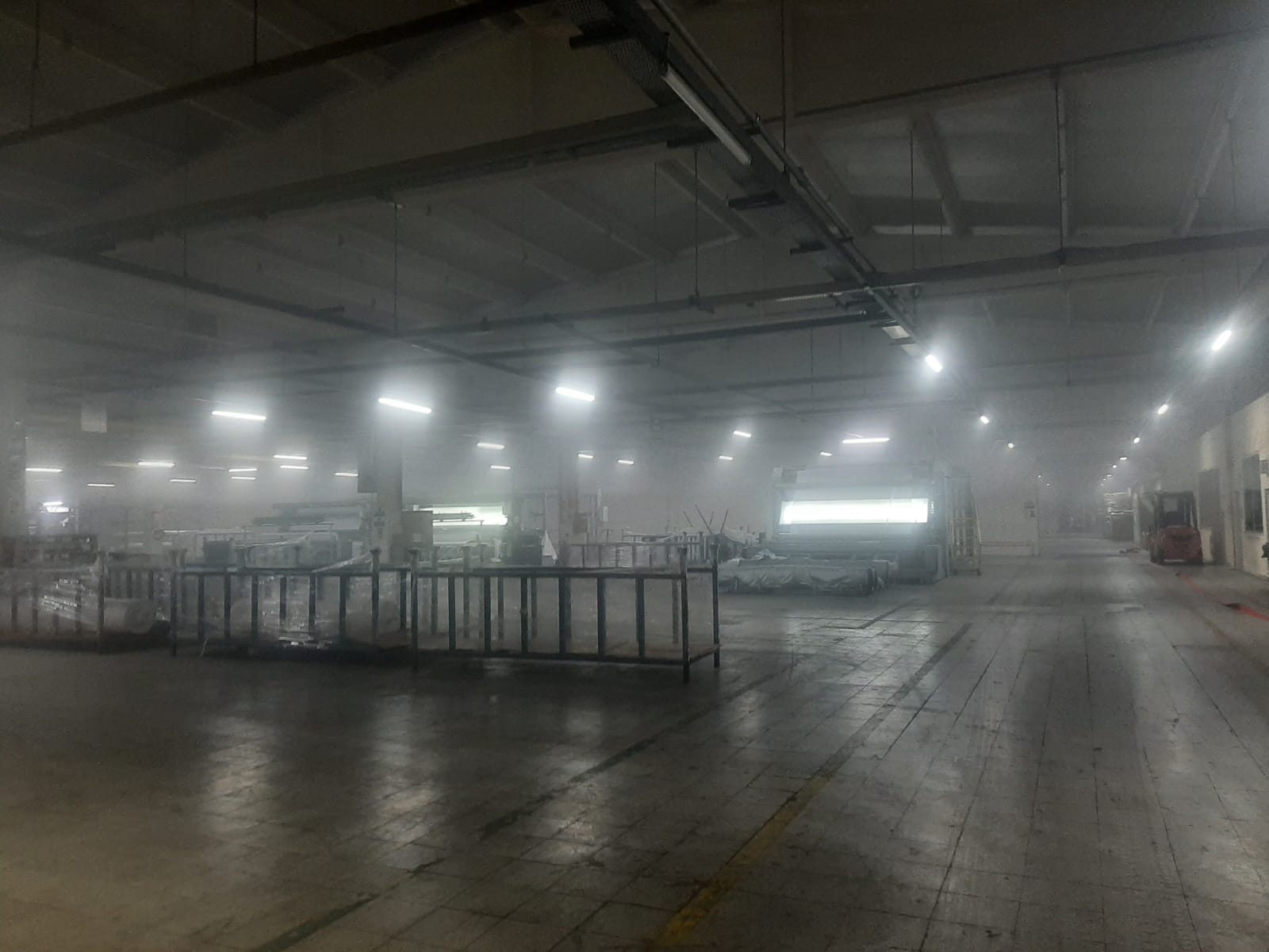 Alevlerin yükselmesiyle birlikte fabrikanın yangın söndürme sistemi devreye girerken, içerisi kısa sürede dumanla kaplandı.