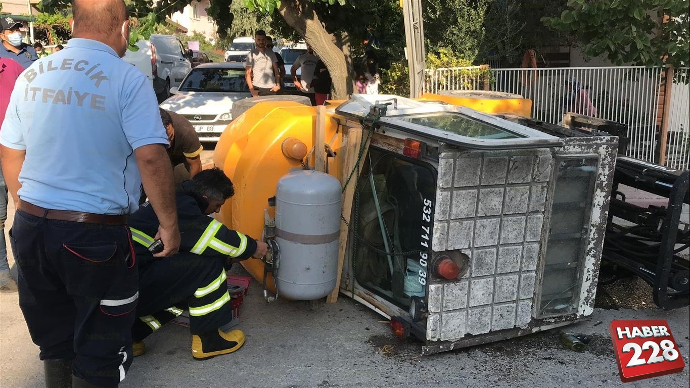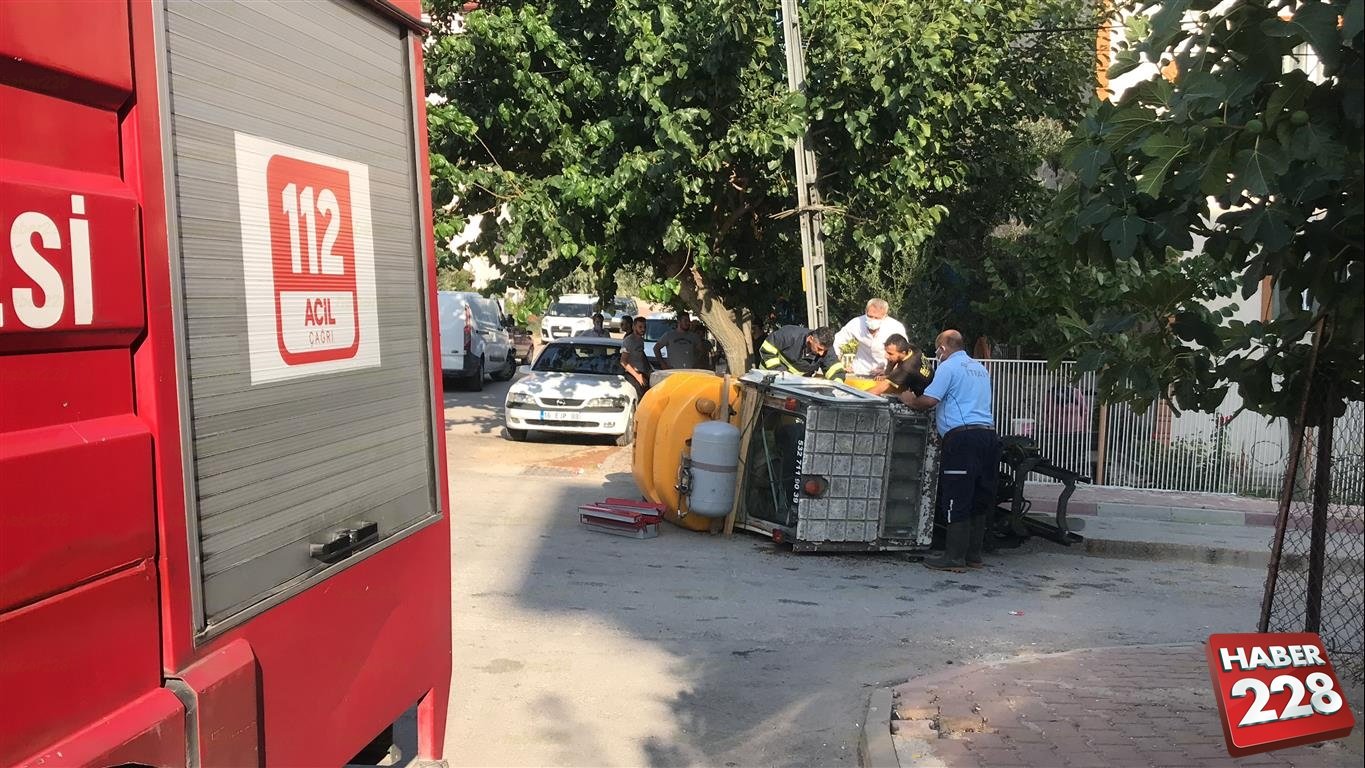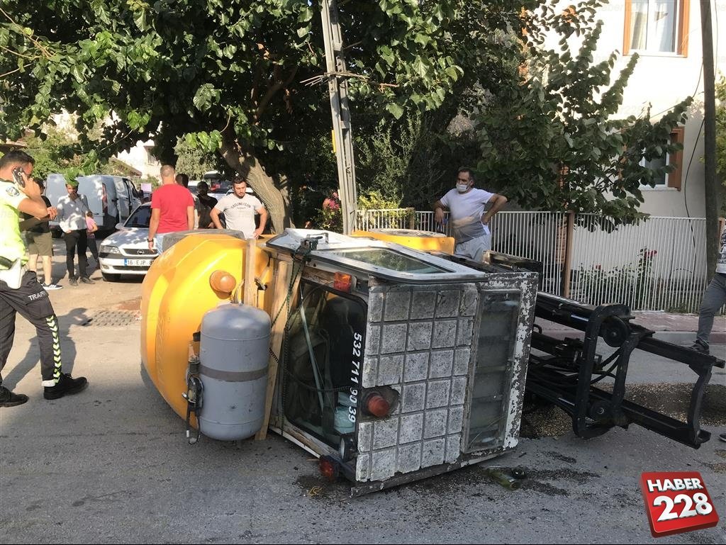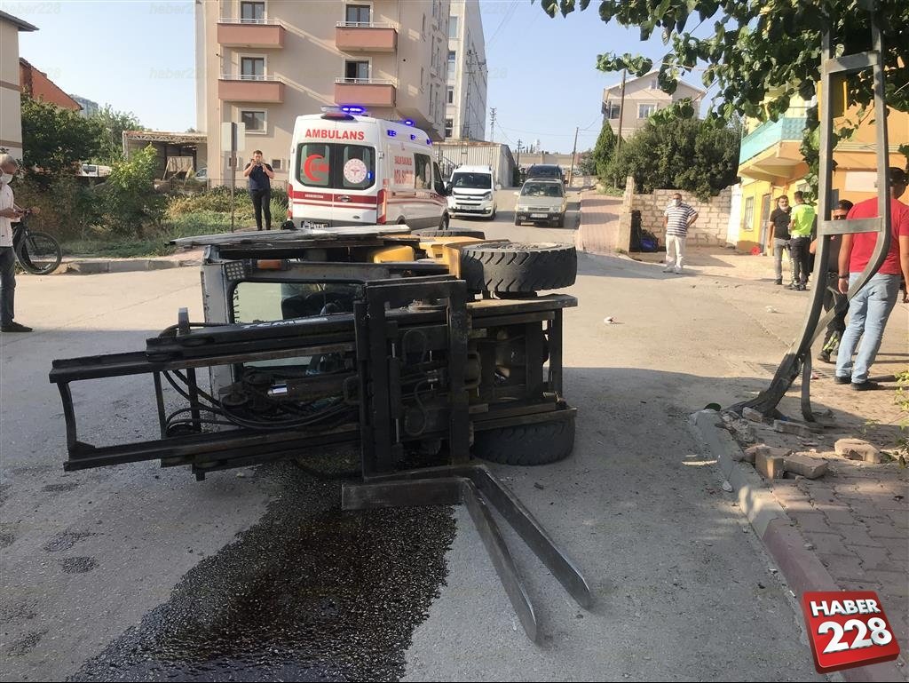 Devrilen forklifte yolcu olarak bulunan Hüseyin Aynur yaralandı.