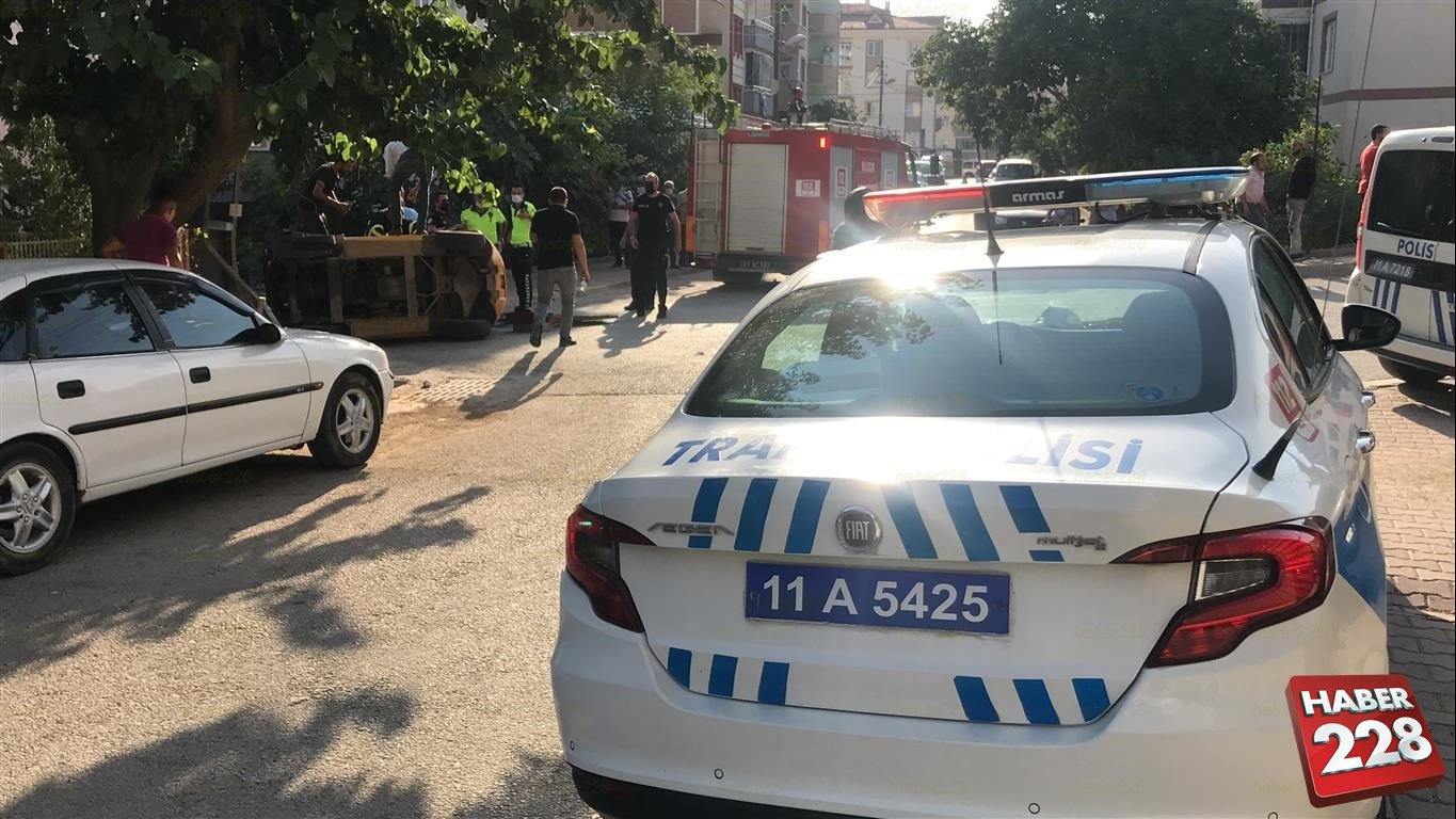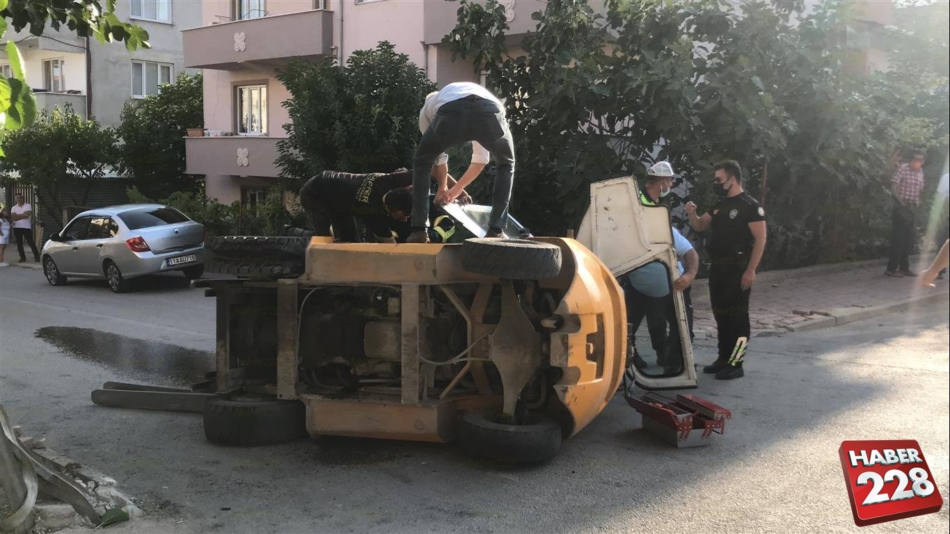 Alınan bilgiye göre, Bilecik Hürriyet Mahallesi Sanayi istikametinden kapalı pazar istikametine seyir halindeki Sezer Ç. idaresindeki İş makinesi forkliftin Şehiralanı Sokak üzerinde direksiyon hakimiyetini kaybederek elektrik direğine çarpması sonucu devrildi.