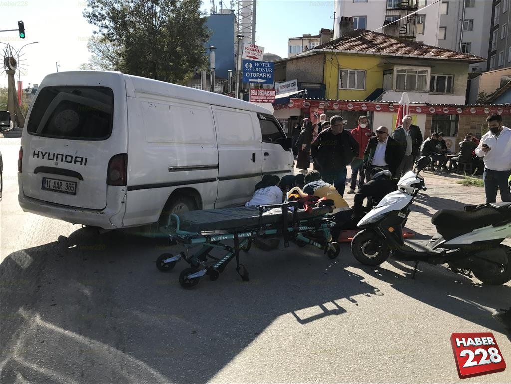 Alınan bilgiye göre, Bilecik Organize Sanayi bölgesinden şehir merkezi istikametine seyir halindeki İbrahim G. yönetimindeki 11 AAR 965 plakalı kamyonet Tepebaşı mevkisine geldiği esnada Koza Sokak yönüne doğru dönmek isterken aynı istikamette seyir halindeki Recep B. idaresindeki 11 AAV 176 plakalı motosiklet çarpıştı.