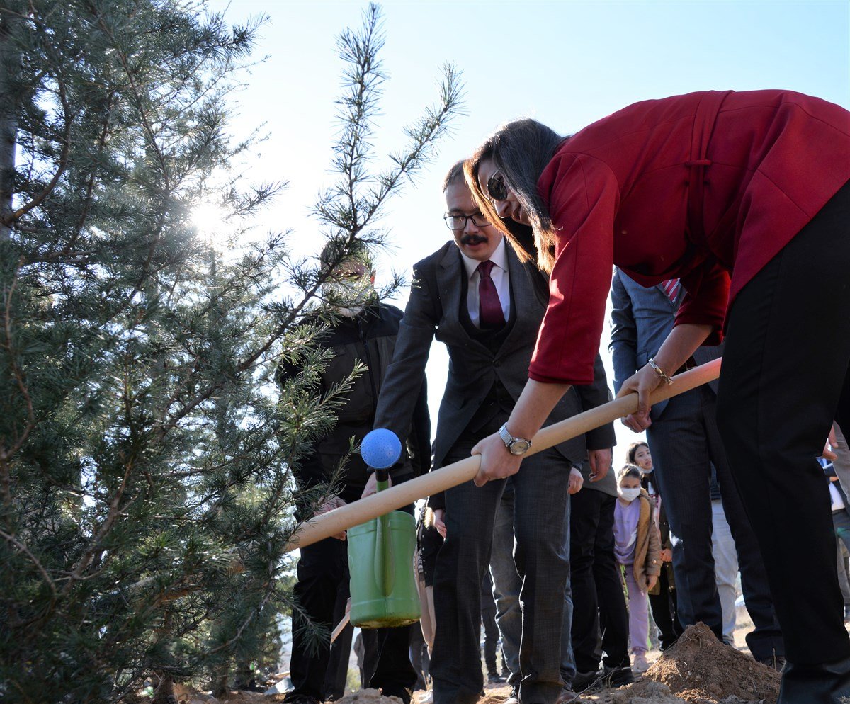 “Söğüt Ertuğrul Gazi ve Domaniç Hayme Ana” adını verdikleri fidanları eşi hanımefendi Nurten Kızılkaya ile birlikte diken Vali Dr. Kızılkaya, Söğüt Kaymakamı Ömer Faruk Tuncer, İl Emniyet Müdürü Ertuğrul Namal, İl Jandarma Komutan Vekili Albay Burhanettin Erdoğan, Söğüt Belediye Başkanı İsmet Sever, Orman İşletme Müdürü Tuncay Yakın ve daire müdürleri, öğrenciler ve gönüllülerle fidanları toprakla buluşturarak, dikilen fidanlara can suyu verdi.