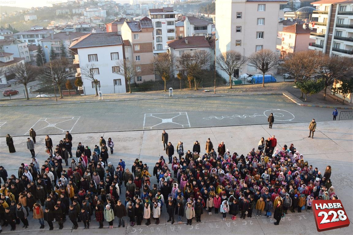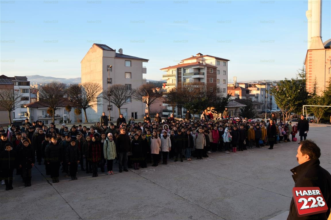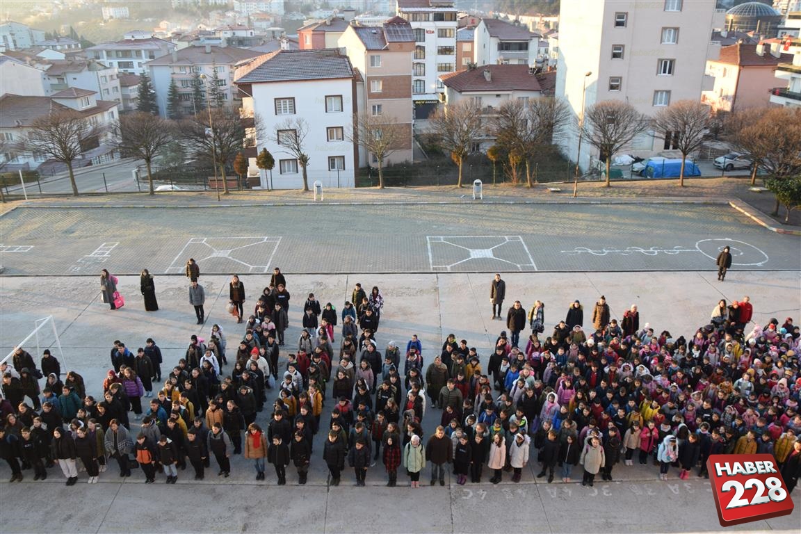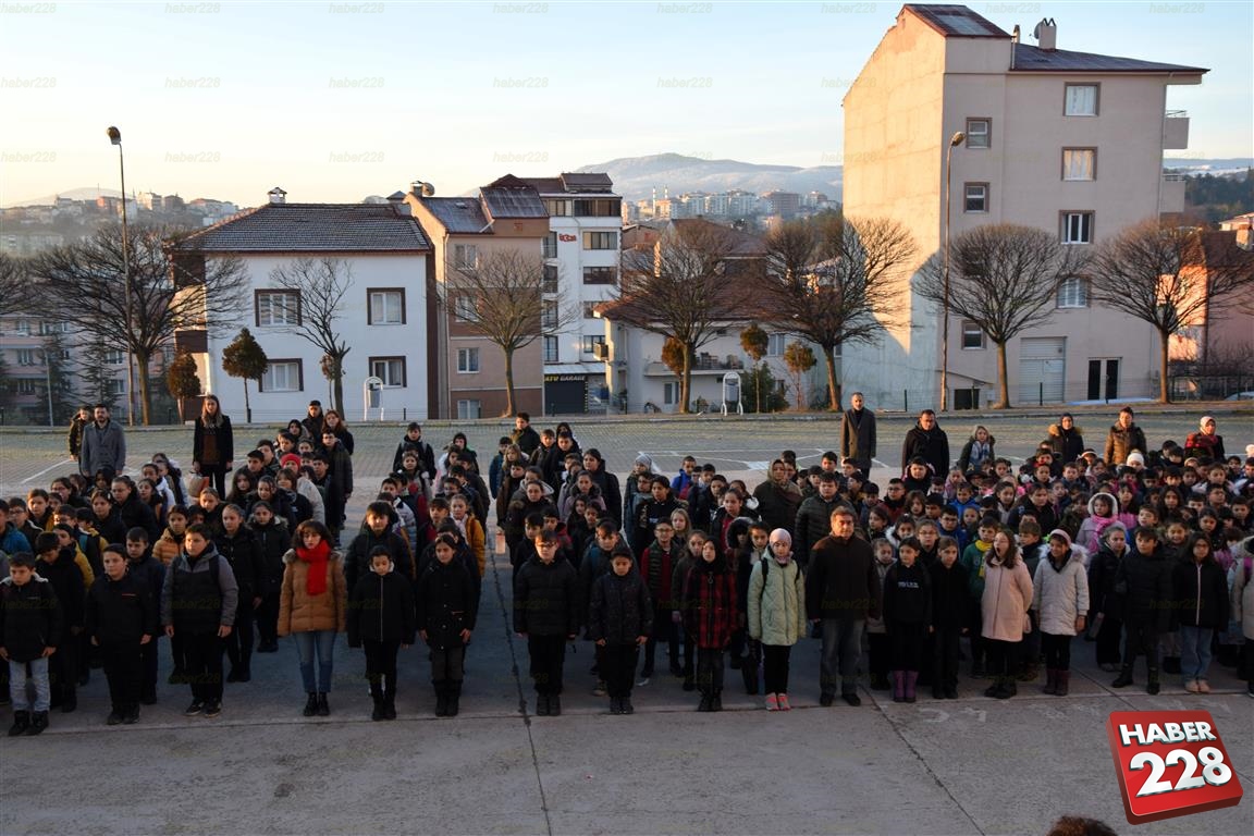 Merkez 700. Yıl İlk ve Ortaokulu öğrencileri, saygı duruşunun ardından İstiklal Marşı’nı okudu.