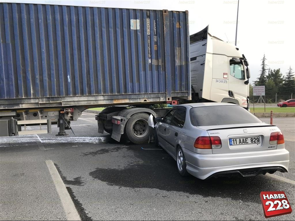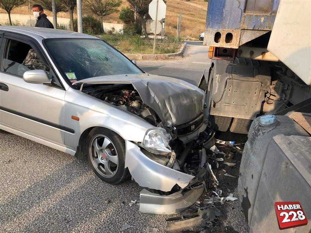 Alınan bilgiye göre, Bilecik’ten Üniversite istikametine seyir halindeki Can Erdi Y. yönetimindeki 11 AAE 829 plakalı otomobil ile Vezirhan İstikametinden Bilecik İstikametine seyir halindeki Fikret F. idaresindeki 34 CAM 379 plakalı tır Bilecik 1. Organize Sanayi Bölgesine dönmek isterken Organize Sanayi kavşağında çarpıştı.