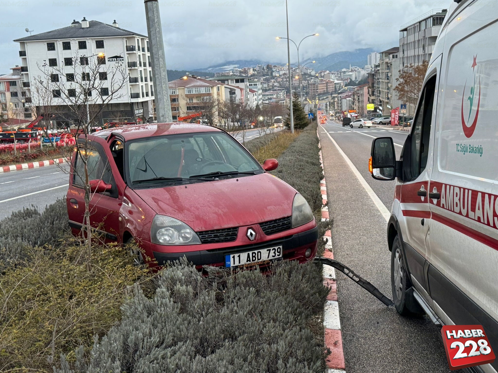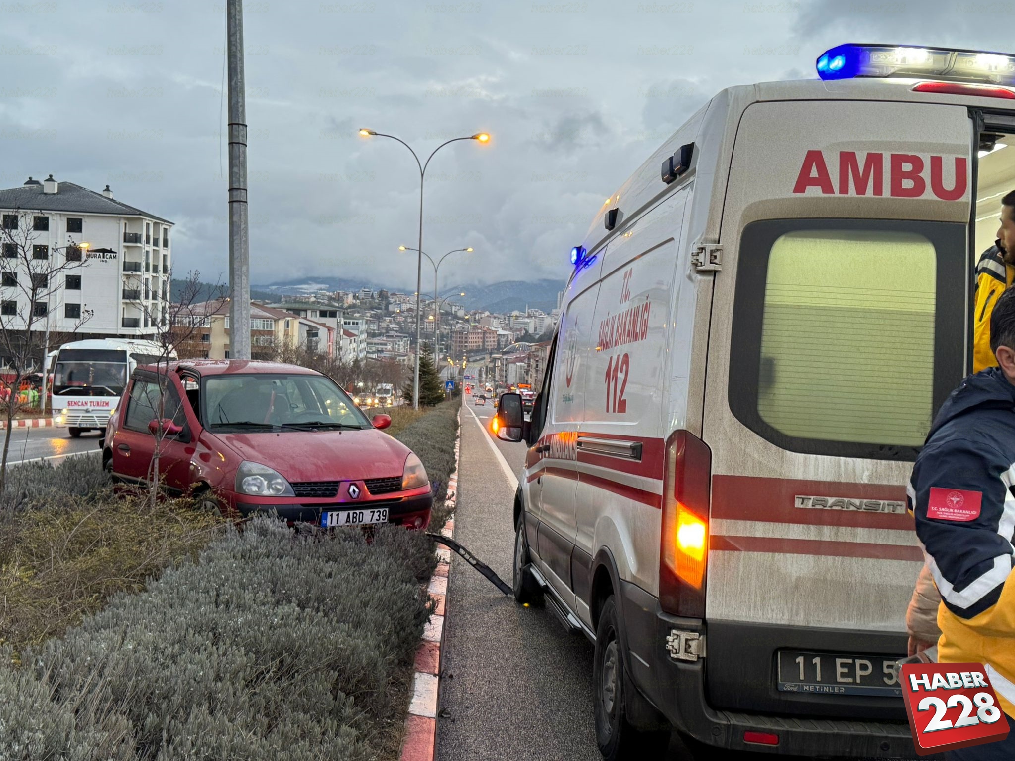 Bilecik’te otomobilin refüje çarpması sonrası meydana gelen kazada maddi hasar meydana geldi.