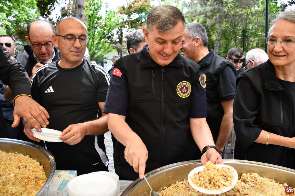 Şeyh Edebali Külliyesi’nde, öğle vakti kılınan namazın ardından gerçekleştirilen organizasyonda İl Jandarma Komutanı Jandarma Kıdemli Albay Ferdi Erbakıcı, vatandaşlara pilav ikram etti.
