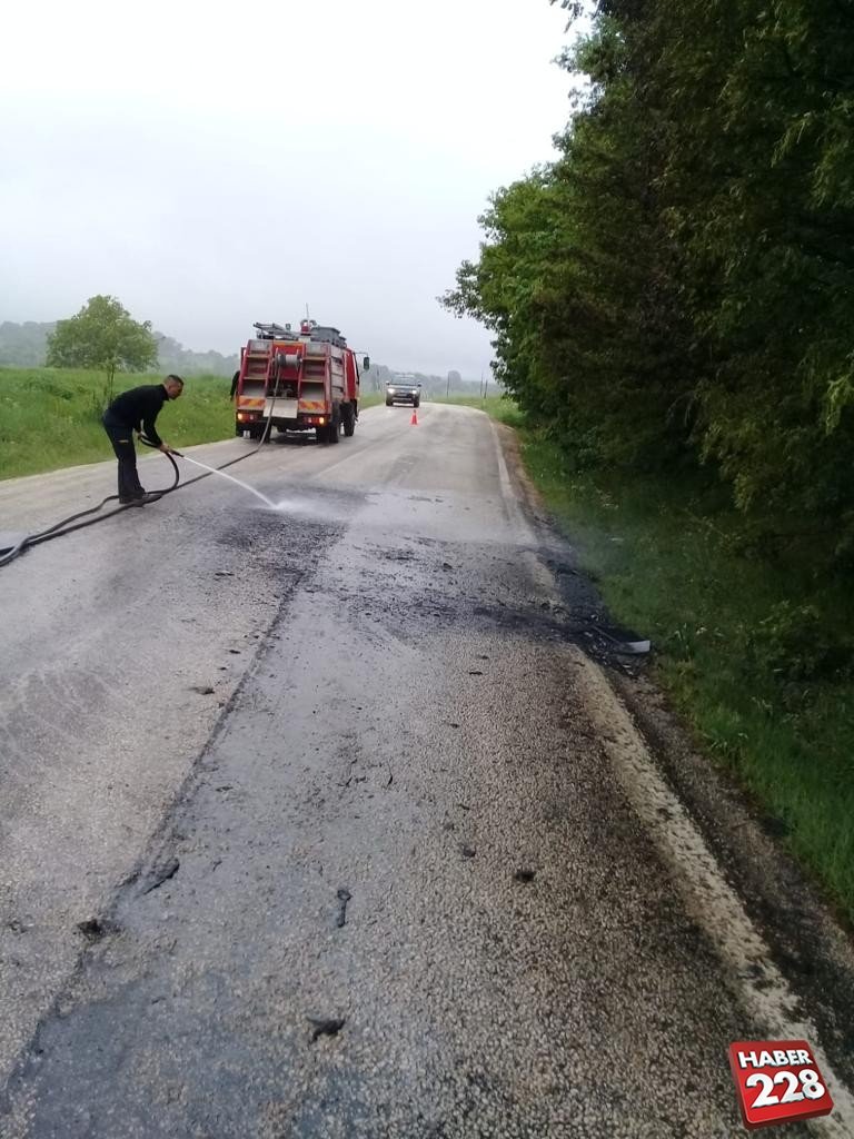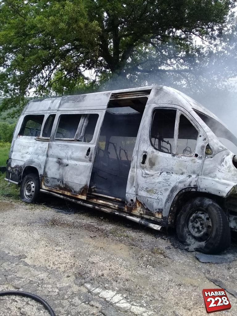 Alınan bilgilere göre karayolu üzerinde seyir halinde bulunan Fikri Erdemir (60) yönetimindeki 11 DB 188 plakalı servis minibüsü, Kepen Köyü mevkiine geldiği esnada motor kısmından alevler yükselmeye başladı.
