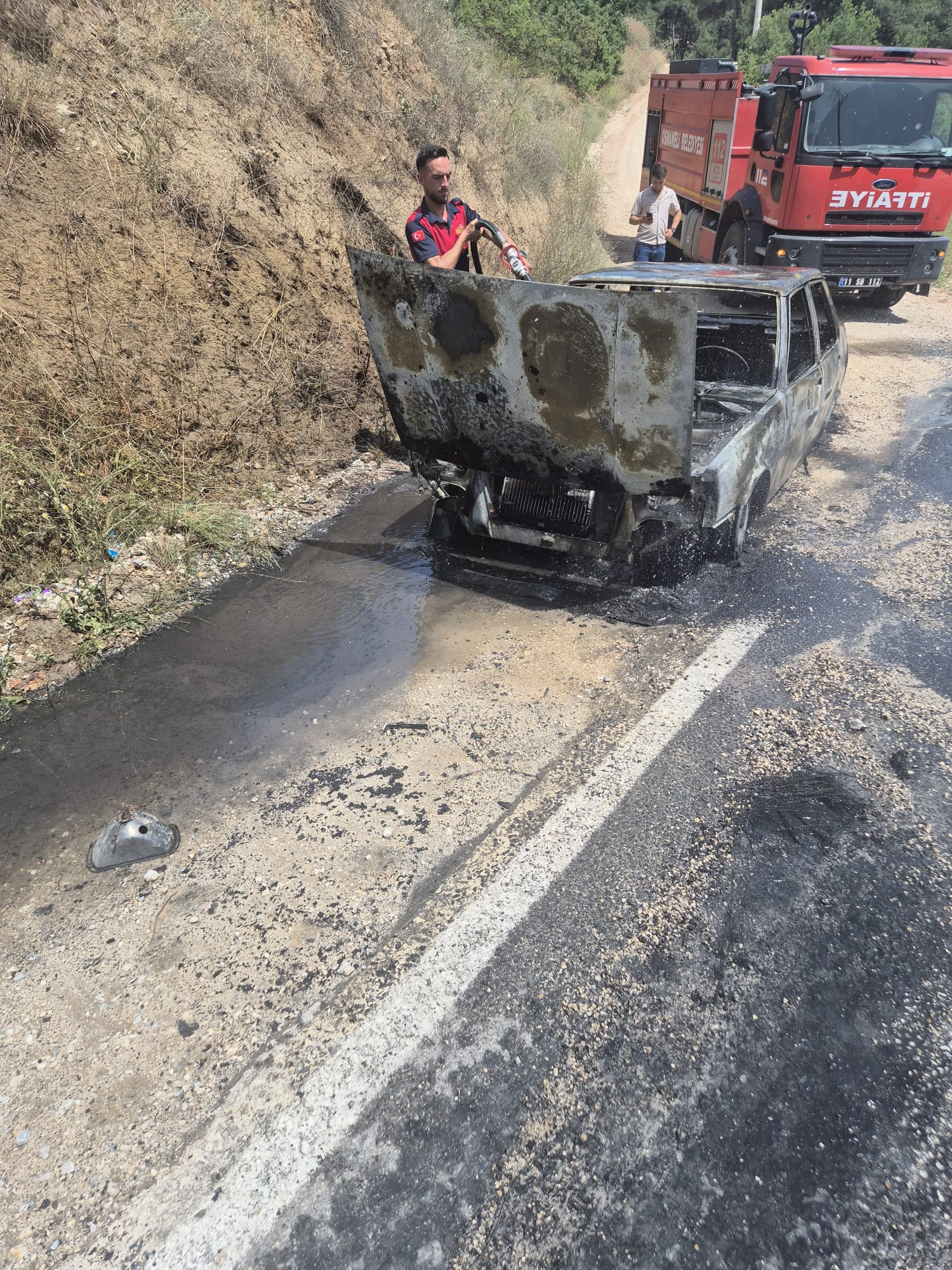 Ekiplerin müdahalesiyle söndürülen yangın sonucu araç kullanılamaz hale geldi. – AA