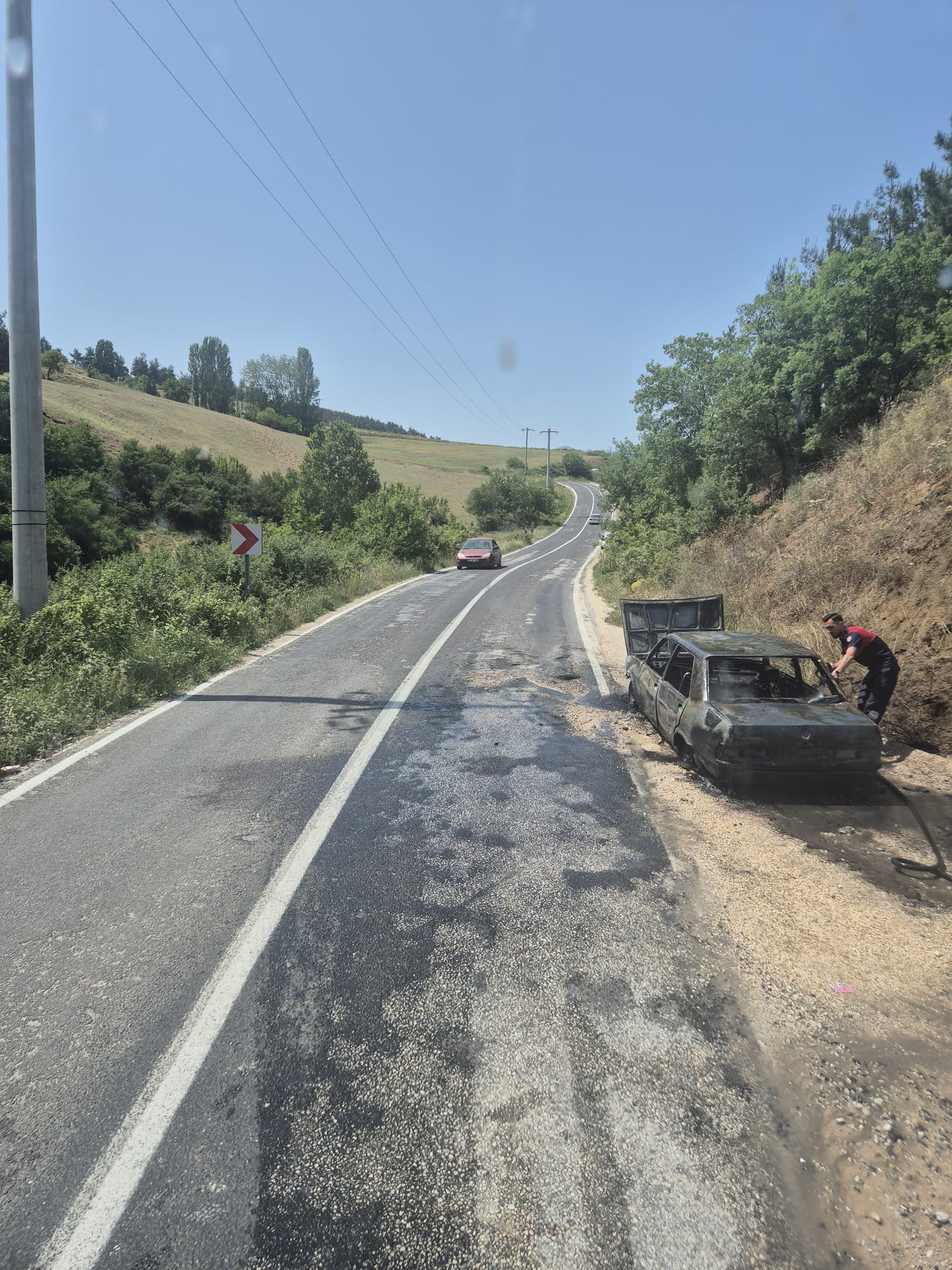 Bilecik’in Osmaneli ilçesinde seyir halindeyken yangın çıkan otomobil, kullanılamaz hale geldi.