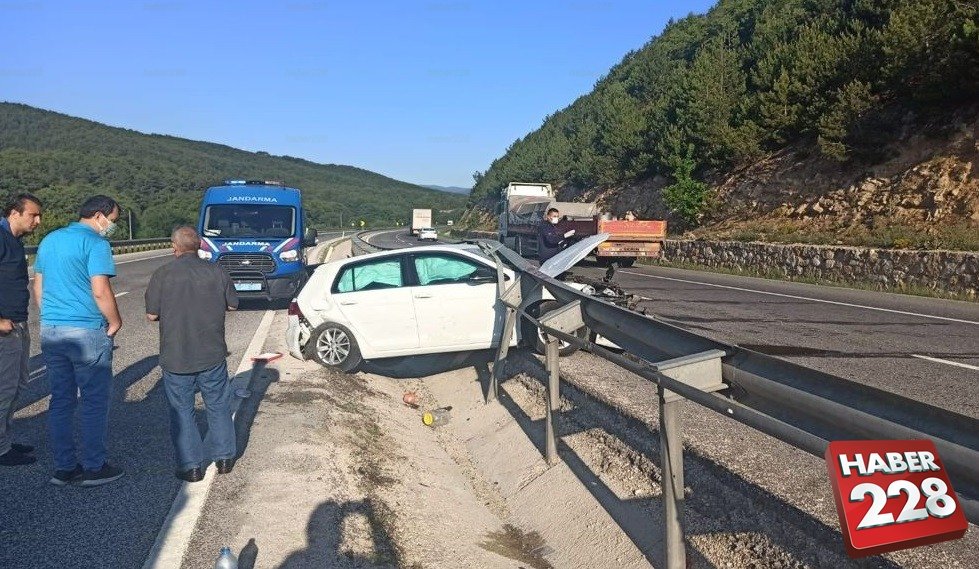 Çarpmanın etkisiyle kontrolden çıkan araç, orta refüje çarparak durdu.