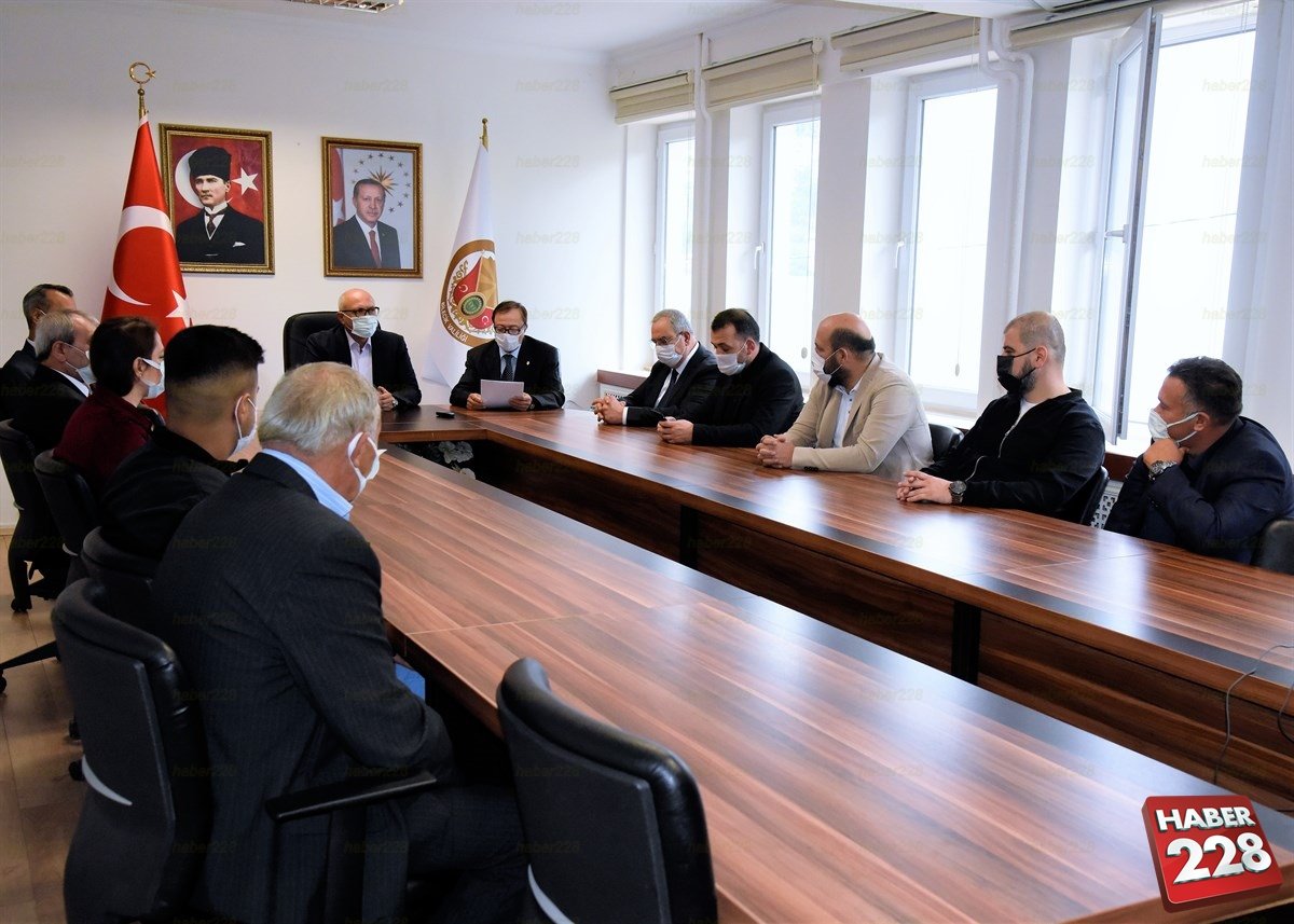 Vali Vekili Kadiroğlu, Ticaret İl Müdürü Şinasi Balta, Esnaf ve Sanatkarlar Odaları Birliği Başkanı Halit Gölcan, esnaf ve sanatkarlar meslek kuruluşlarının temsilcilerinden oluşan komiteyi kabul etti.