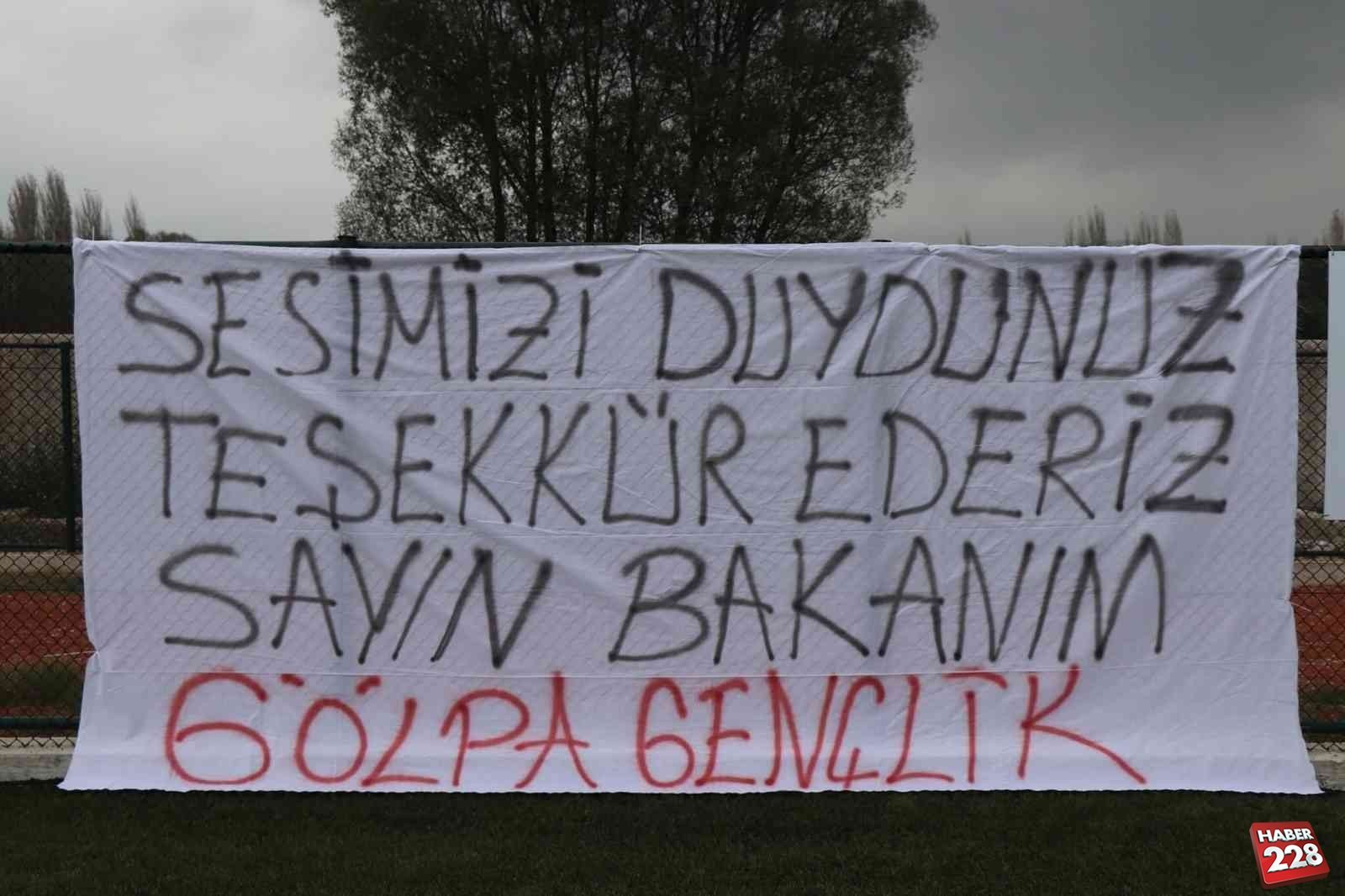 Gölpazarı Belediyespor taraftarları bu kez de “Sesimizi duydunuz, teşekkür ederiz sayın bakanım. Gölpa Gençlik” yazılı pankart açtılar. Gölpazarı Belediyespor kendi saha ve seyircisi önünde Demirköyspor’u 23’üncü dakikada takım kaptanı Ali Onur Şen, 70’inci dakikada Burak Açıkgöz ve 83’üncü dakika Akın Baydemir’in golü ile 3-0 kazandı.