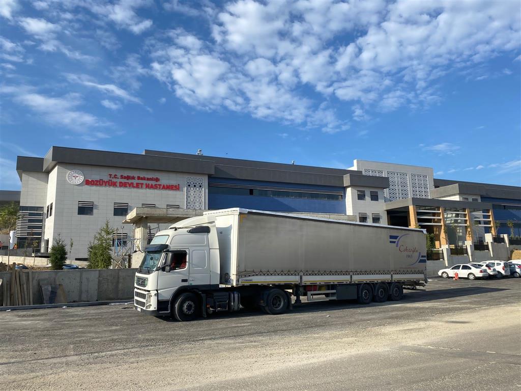 BOZÜYÜK HALKI YENİ HASTANE İÇİN GÜN SAYIYOR EKİM AYINDA AÇILMASI HEDEFLENEN YENİ HASTANENİN İÇ TEFRİŞATINA BAŞLANDI SAĞLIK BAKANLIĞI TARAFINDAN GÖNDERİLEN MALZEMELER TIRLARLA GELMEYE DEVAM EDİYOR
