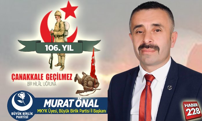 Büyük Birlik Partisi Bilecik İl Başkanı – MKYK Üyesi Murat Önal’ın 18 Mart Mesajı Uğur Baklacı tarafından yayınlandı 18 Mart 2021, 10:26 yayınlandı + - Paylaş Bu Yazıyı Paylaş veya linki kopyala Kopyala Büyük Birlik Partisi Bilecik İl Başkanı – MKYK Üyesi Murat Önal’ın 18 Mart Mesajı Yorum Yap Paylaş