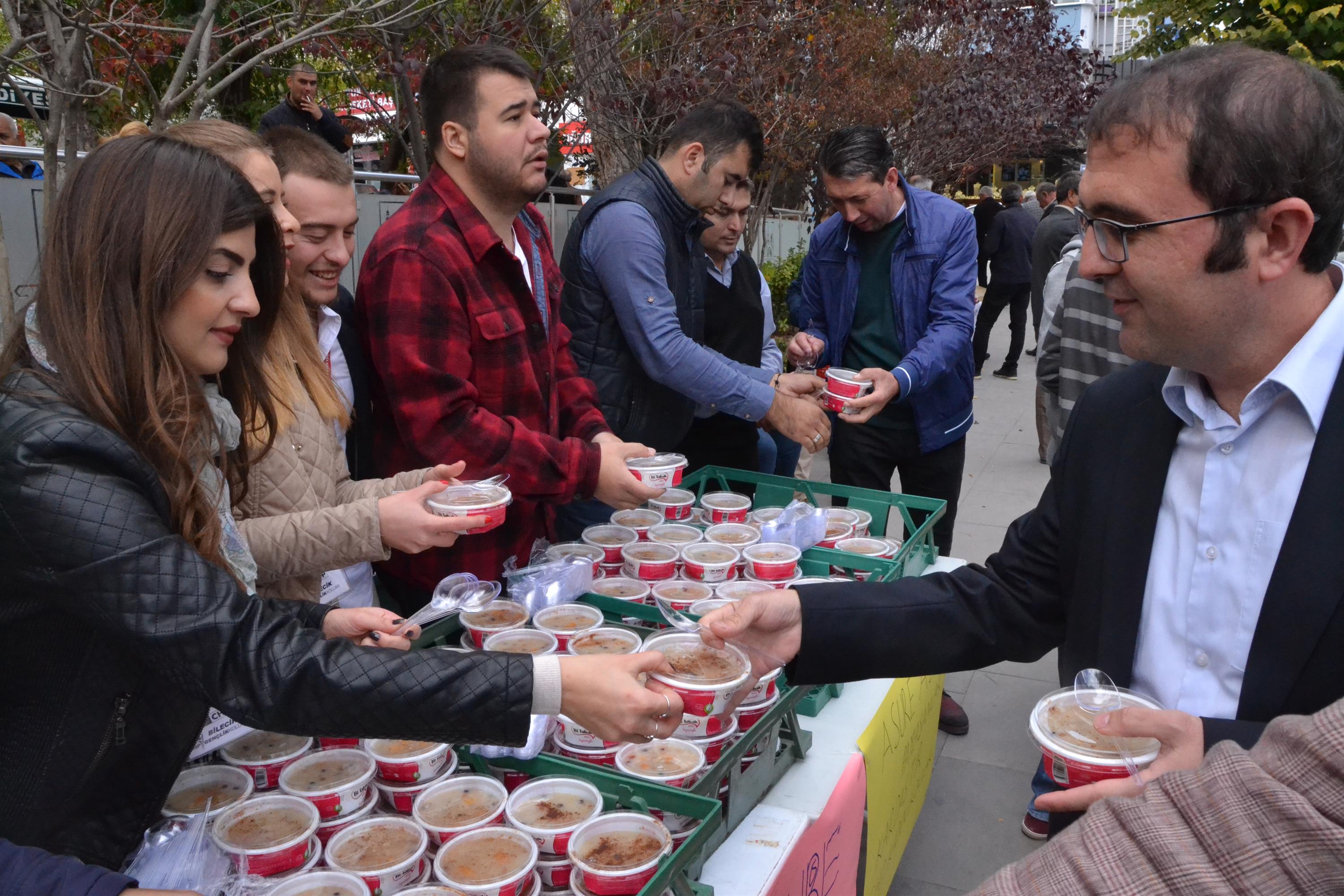 Muharrem Ayı sebebiyle Cumhuriyet Halk Partisi Bilecik İl Başkanlığı, Bilecik Belediyesi Aile Çay bahçesi önünde vatandaşlara aşure ikramında bulundu.