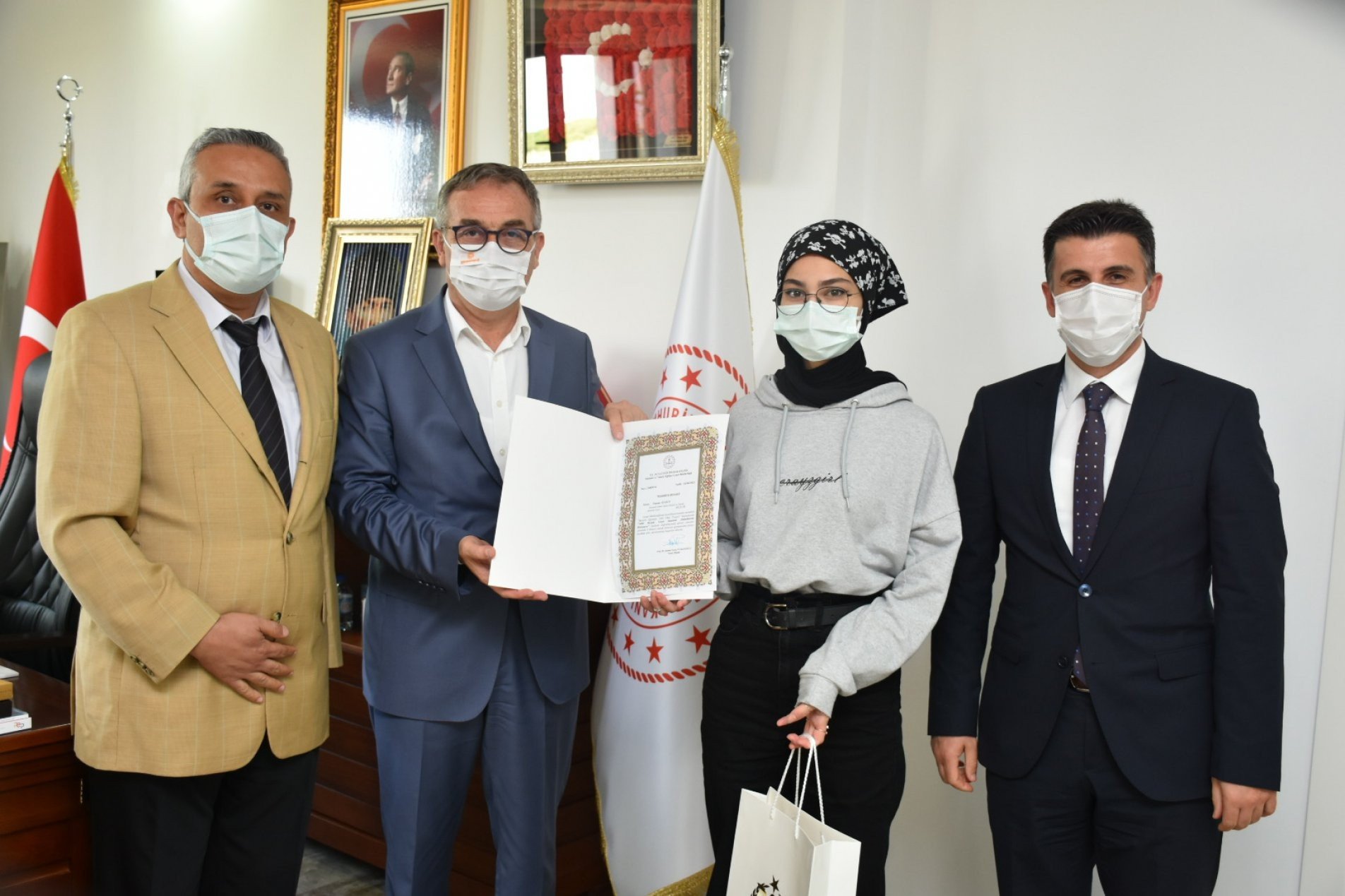 Öğrencilerimize ödülleri Milli Eğitim Müdürü Mustafa Sami Akyol tarafından verildi. Müzik ve resim alanı birincilerine dizüstü bilgisayar, ikinci ve üçüncülere ise tablet verildi. Etkinliklere çevrim içi çalışmalarda rehberlik etmiş ve onların ürün veya eser ortaya çıkartmalarını sağlamış Güzel Sanatlar Lisesi öğrencileri ile her iki alanda ilk üç dereceye giren eserlerin sahibi olan öğrencilere Mesleki ve Teknik Eğitim Genel Müdürlüğü tarafından hazırlanan Katılım ve Teşekkür Belgesi verildi.