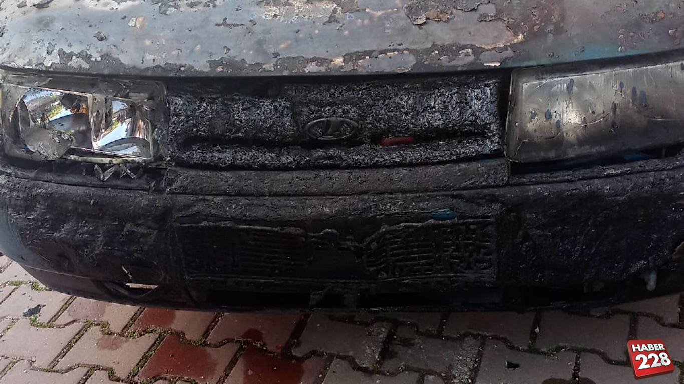 Garajdaki bir otomobilin ön kısmında hasara yol açan yangının çıkış nedeni araştırılıyor.