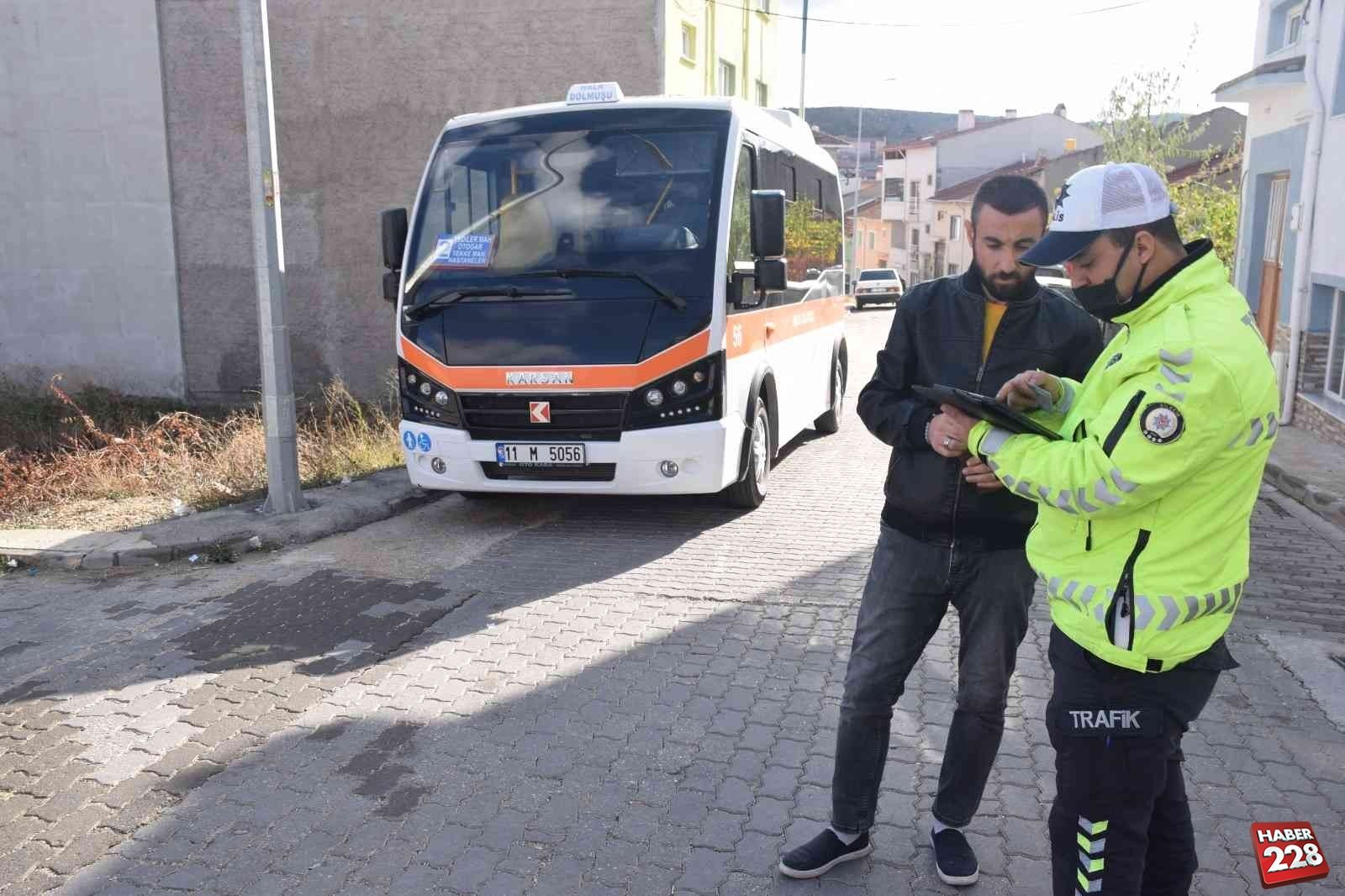 Bilecik’in Bozüyük ilçesinde, İlçe Emniyet Müdürlüğüne bağlı Trafik Tescil ve Denetleme Büro Amirliği ekipleri tarafından halk dolmuşlarına yönelik sivil denetim çalışmaları yapıldı.