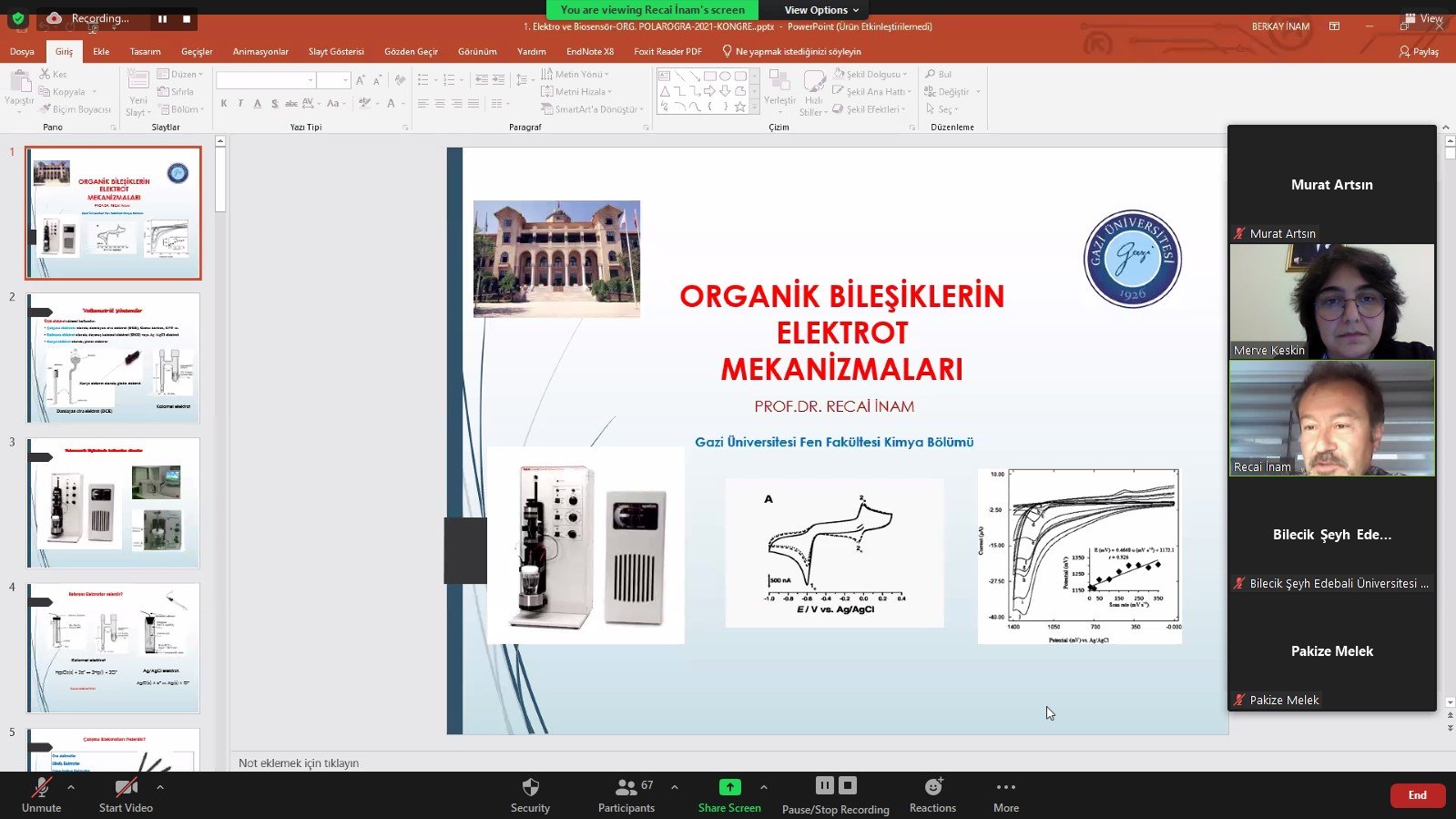 Bilecik Şeyh Edebali Üniversitesi ev sahipliğinde düzenlenen I. Ulusal Elektrokimya ve Biyosensör Uygulamaları Çalıştayı, 30 Ekim – 1 Kasım 2021 tarihleri arasında çevrimiçi olarak gerçekleştirildi.