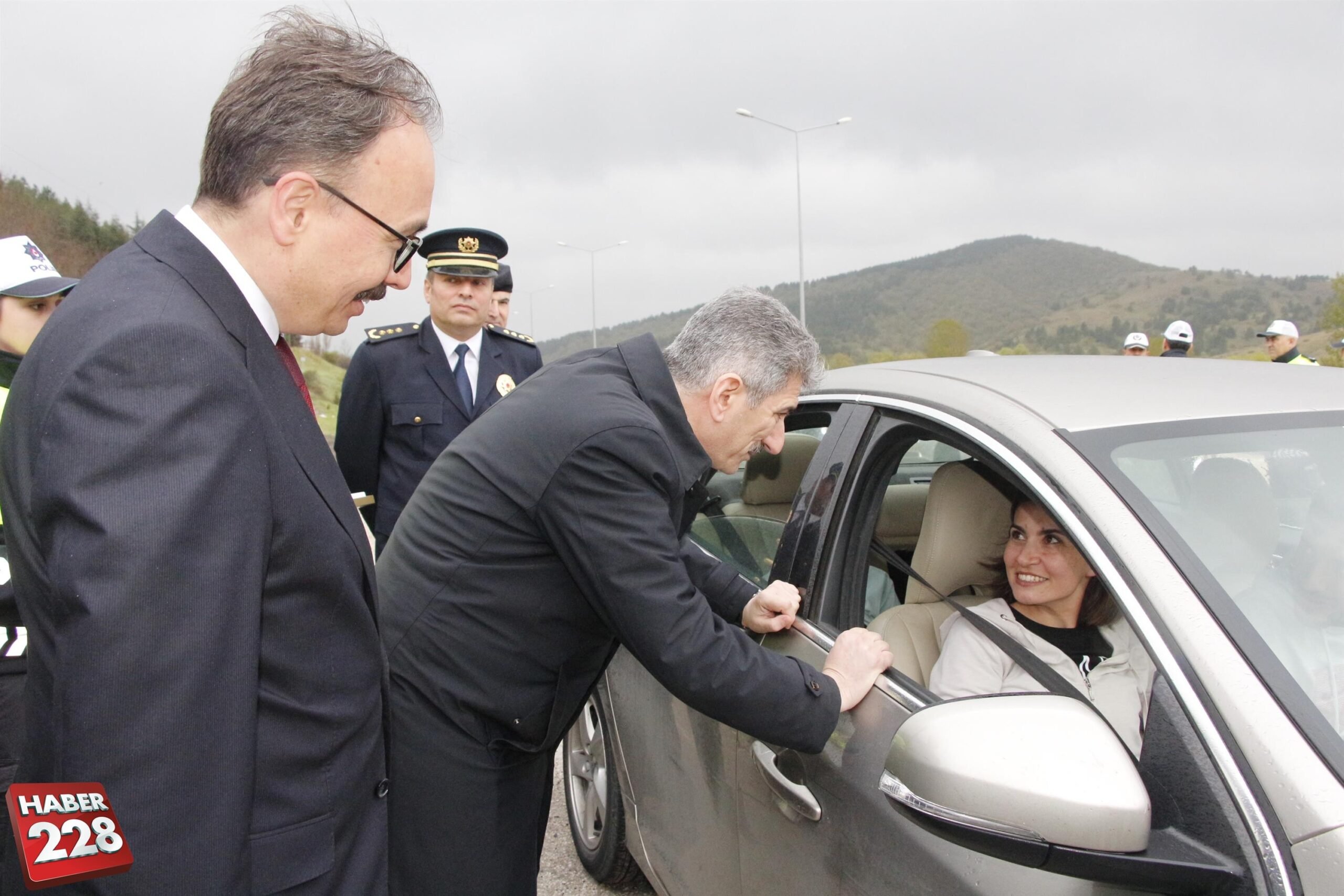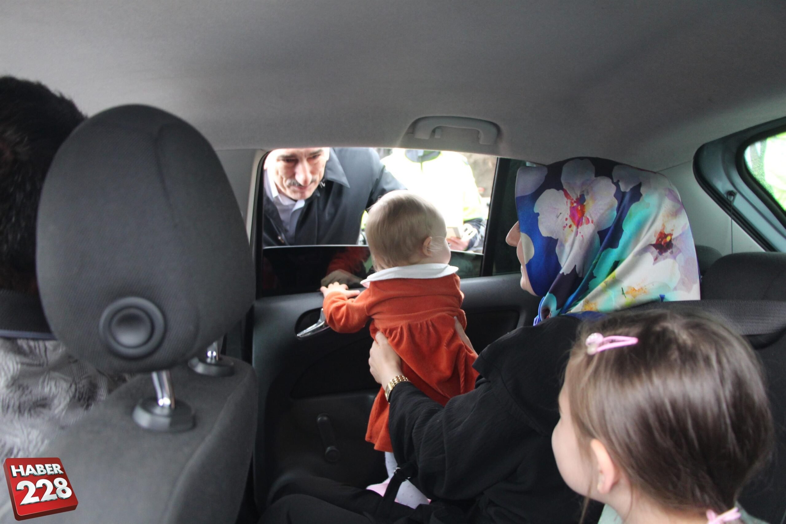Burada, sürücülere emniyet kemeri takmaları ve hız sınırına uymaları konusunda uyarılarda bulunan İnce, araçlardaki vatandaşların bayramını kutlayıp, çocuklara da hediyeler dağıttı.