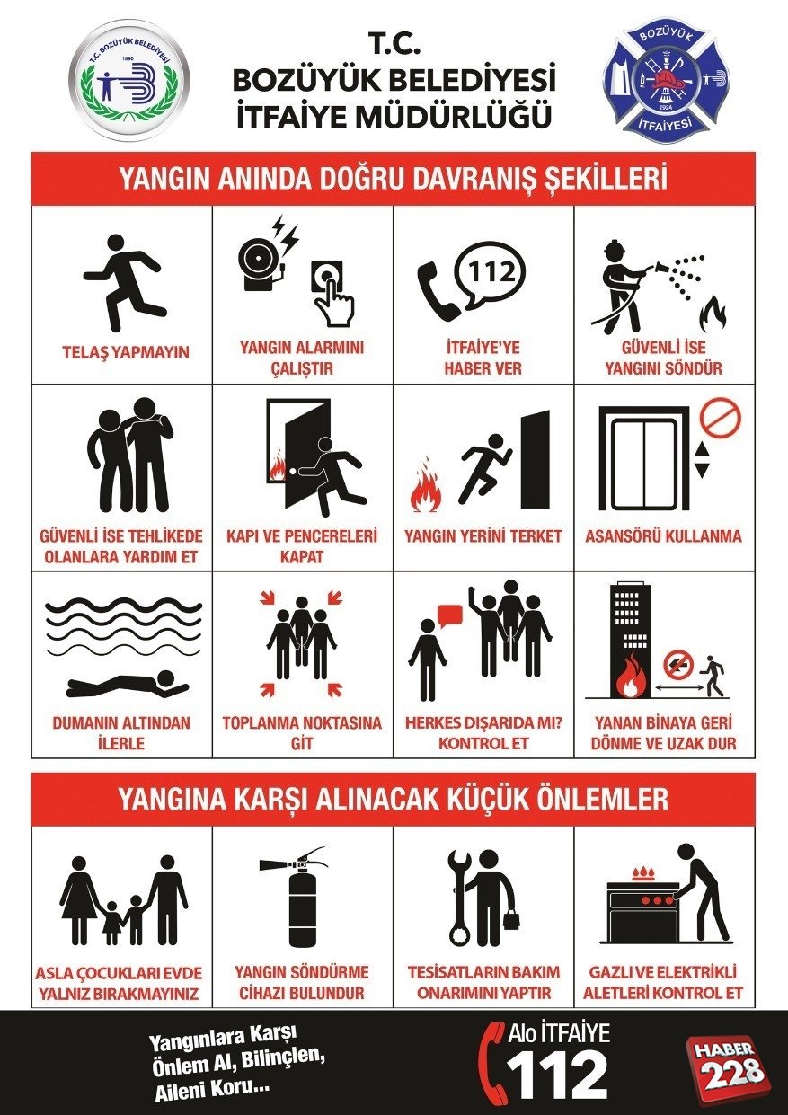 Bilecik’in Bozüyük ilçesinde itfaiye ekiplerince vatandaşları bilgilendirmek amacıyla hazırlanan broşürler ilçe genelinde çeşitli noktalara asıldı.