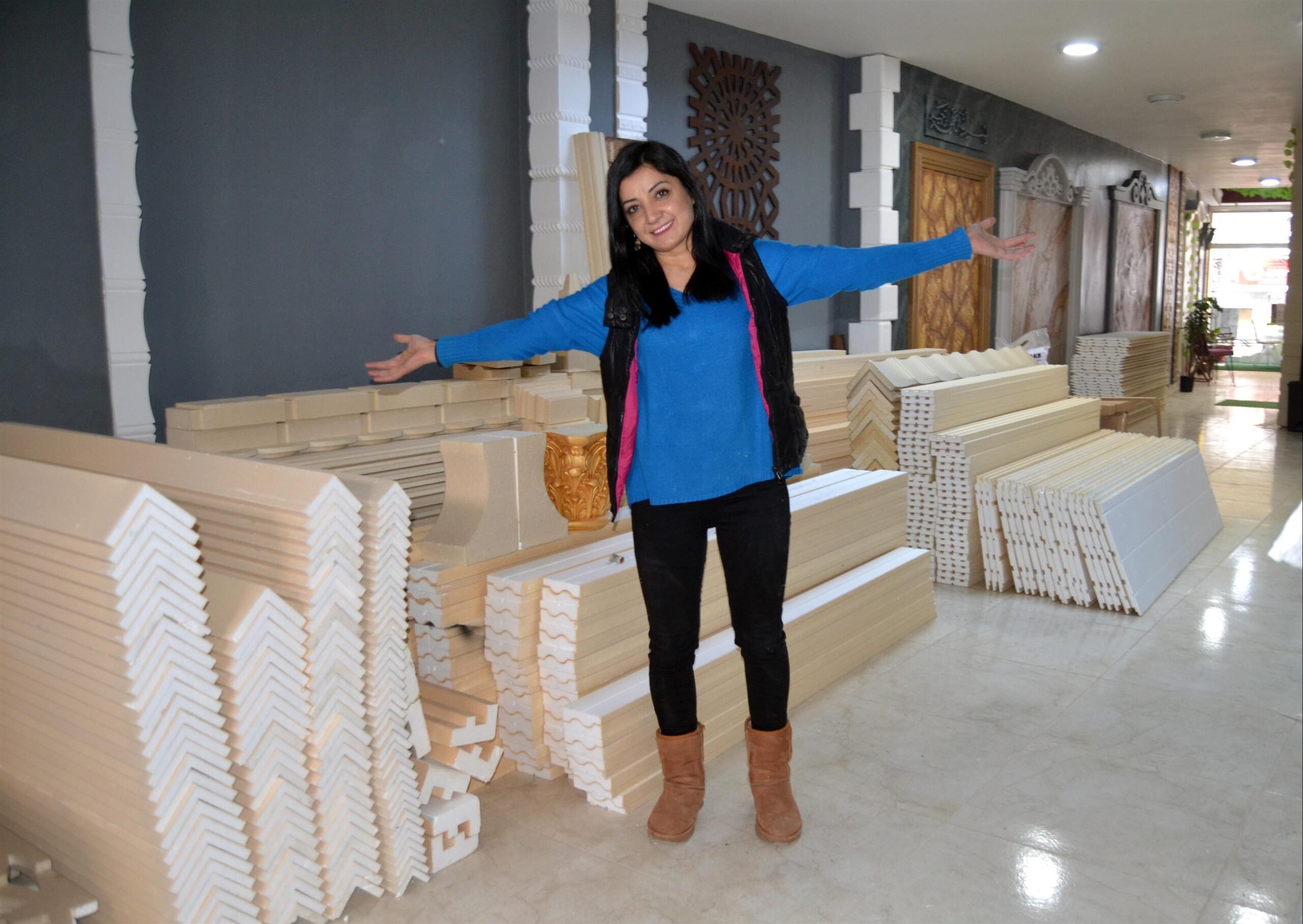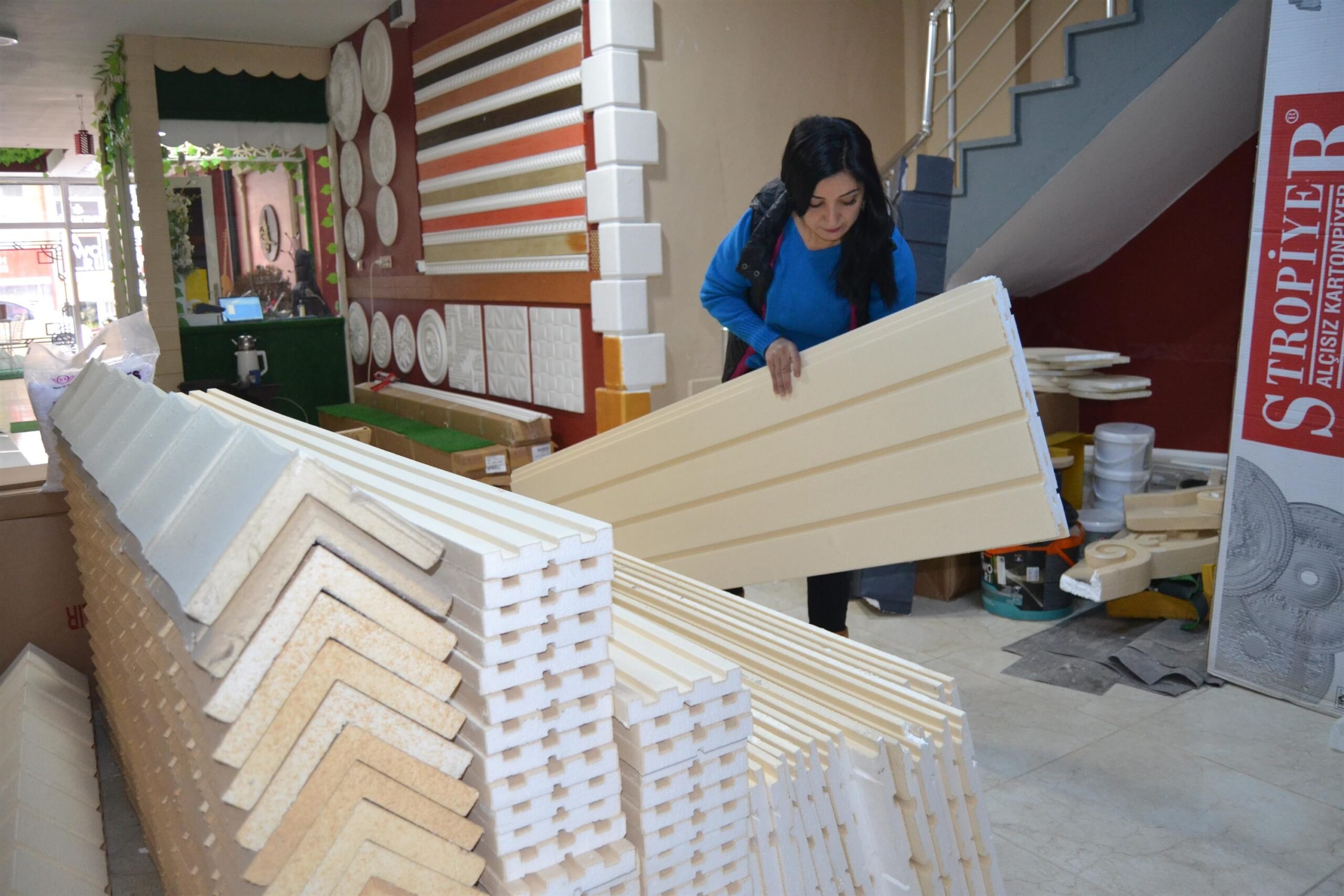 Bilecik’te KOSGEB desteğiyle inşaat sektöründe kendi işinin patronu olan kadın girişimci Henba Dekor sagibi Semra Aslan Ser, binalara görsel estetik katıyor.