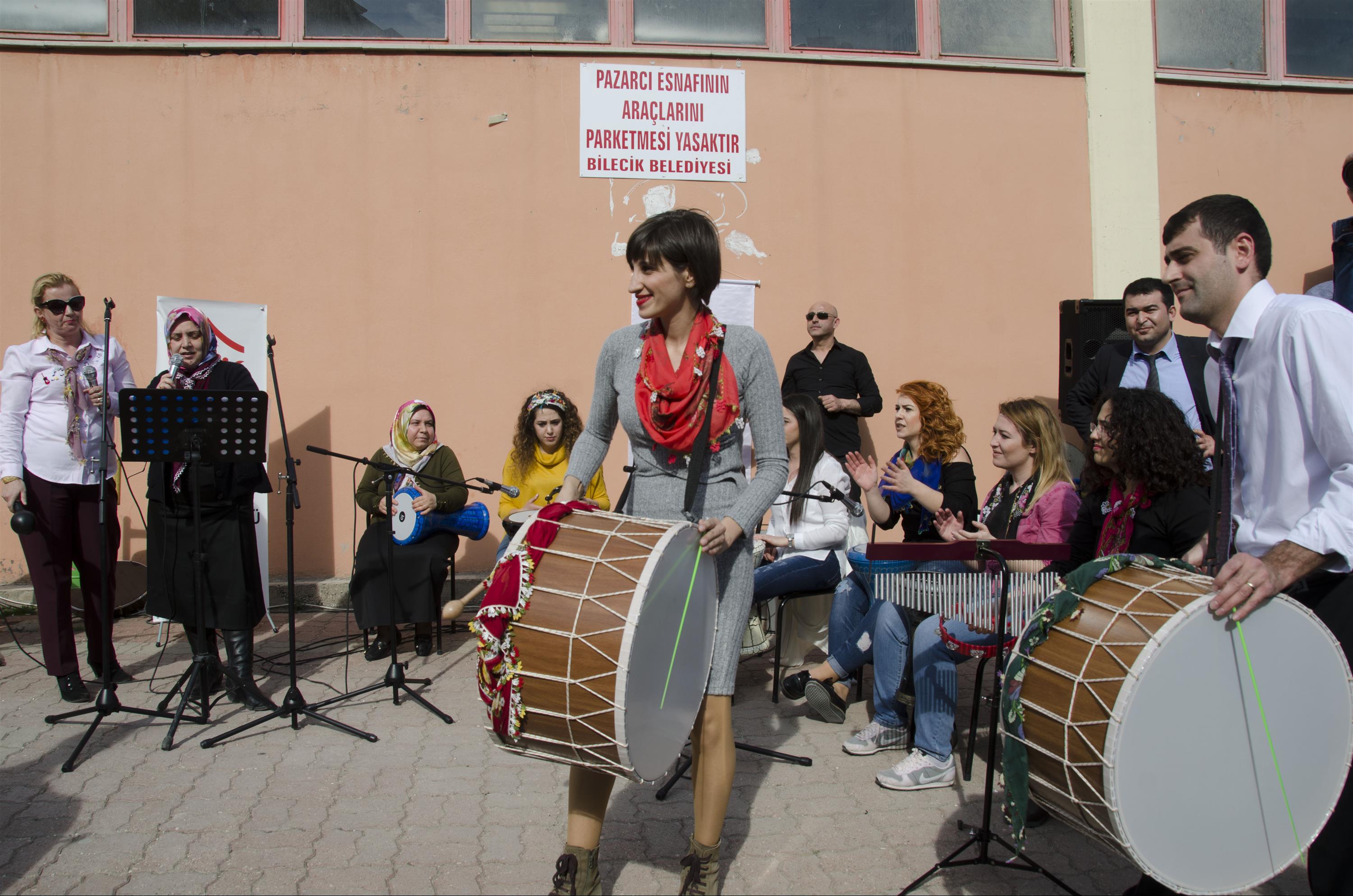 Bilecik Aile ve Sosyal Politikalar İl Müdürlüğünde görevli bayan personeller, kurdukları ritim grubu ile 8 Mart Dünya Kadınlar Gününde farkındalık oluşturmak amacıyla müzik etkinliği gerçekleştirdi.